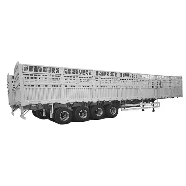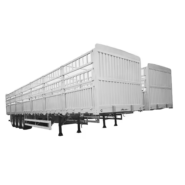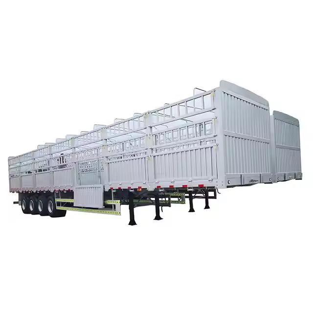 รถพ่วงกึ่งพ่วงบรรทุกสินค้าแห้งแบบมีรั้วเหล็กหนาพิเศษ 3 เพลา แบบคอห่าน ใหม่และมือสอง