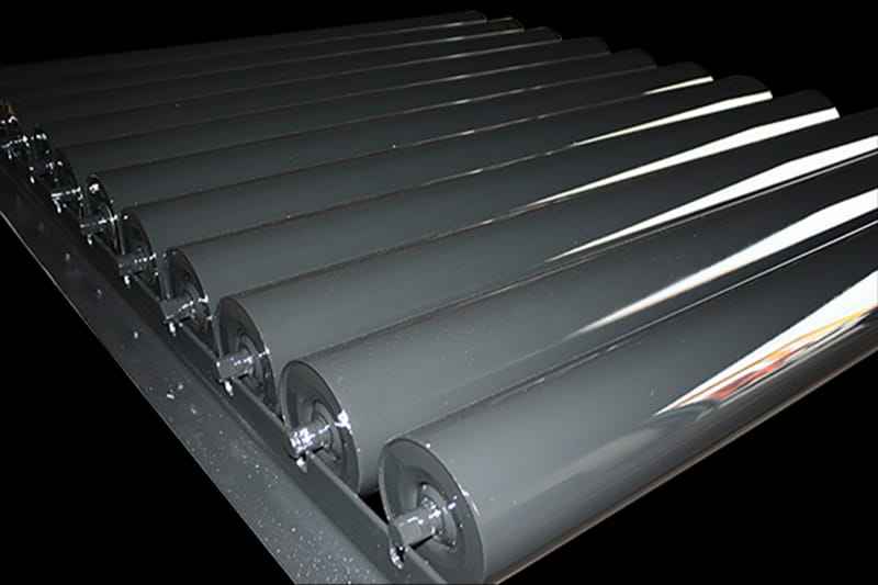ลูกกลิ้งสายพานลำเลียงแบบลูกกลิ้งเหล็กกล้าสำหรับงานหนักชิ้นส่วนสำคัญสำหรับอุปกรณ์จัดการวัสดุ