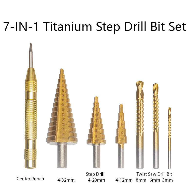 6PCS HSS Titanium Step Drill Bit Set