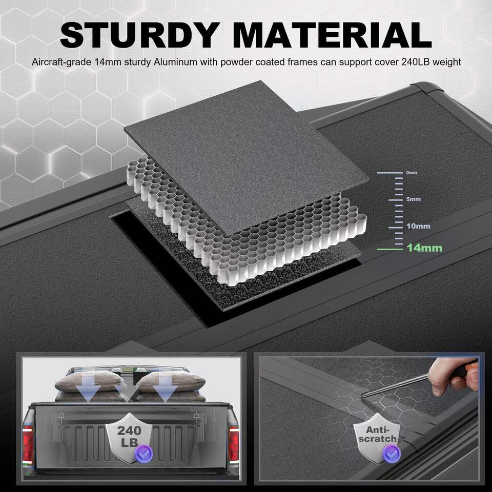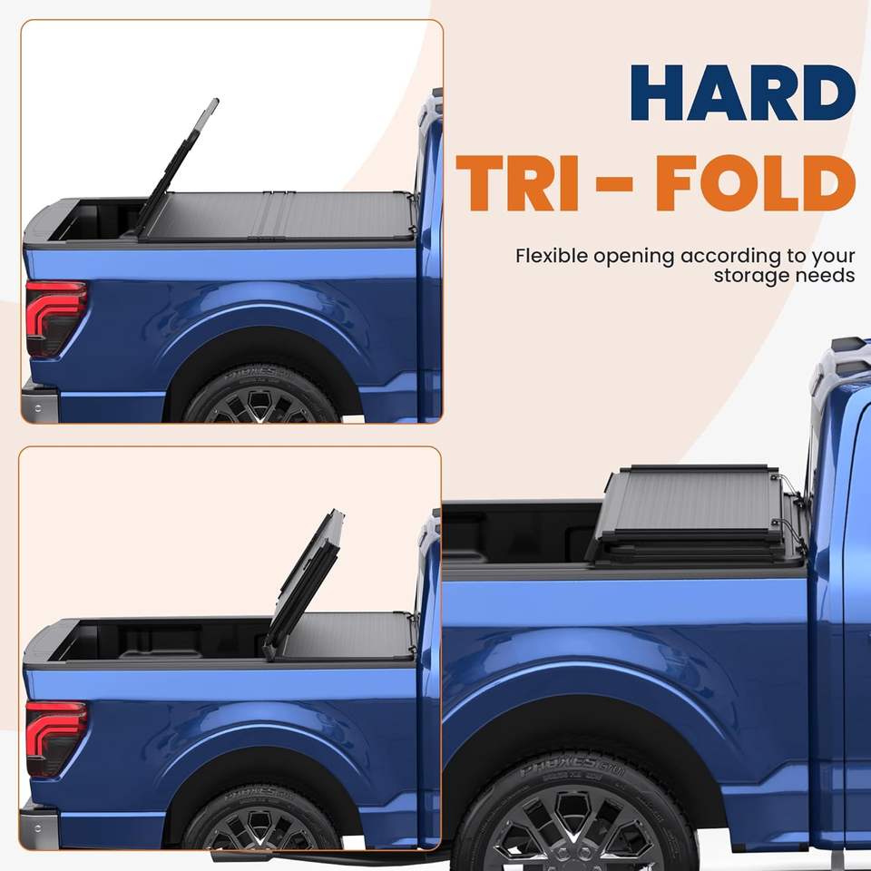 ฝาปิดกระบะท้ายรถบรรทุกแบบพับสามตอน อลูมิเนียมอัลลอยด์ แข็งแรงทนทาน ขนาด 5 ฟุต สำหรับรถกระบะโตโยต้า ทาโคมา ปี 2021-2025 แบบพับเก็บได้ ล็อคได้ กันน้ำ สำหรับรถขับเคลื่อน 4 ล้อ