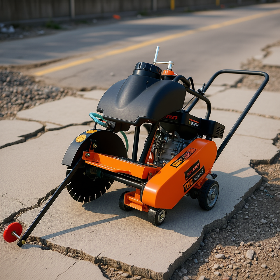 เครื่องตัดคอนกรีตแบบเดินตาม ยี่ห้อ Tmg ความลึกการตัด 3 นิ้ว เครื่องยนต์เบนซิน สำหรับงานถนน