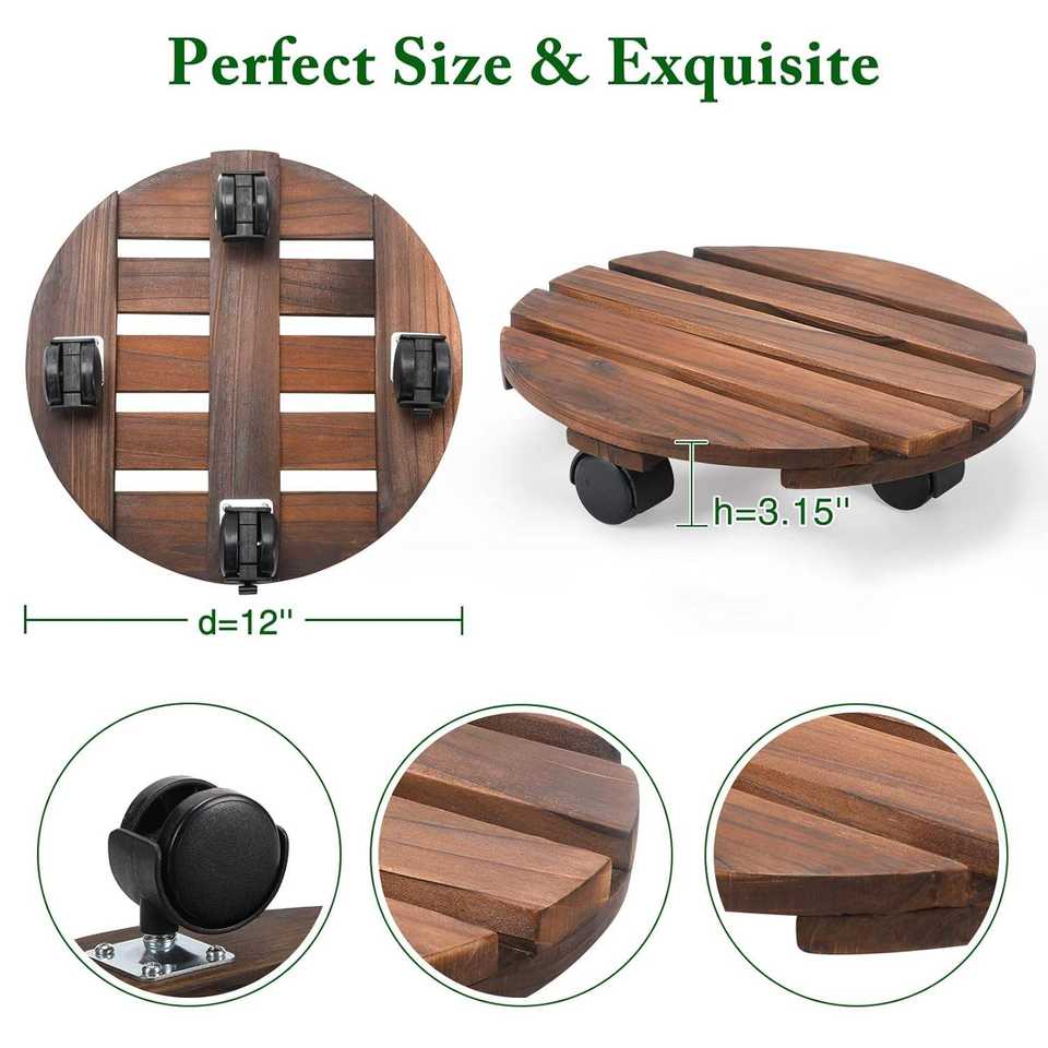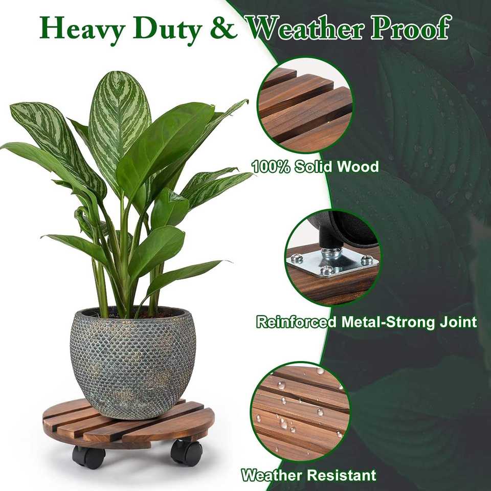 รถเข็นไม้แบบหนาพร้อมล้อเลื่อนสำหรับวางกระถางต้นไม้ขนาดใหญ่ ใช้ได้ทั้งภายในและภายนอกอาคาร พร้อมล้อโลหะแบบล็อคได้