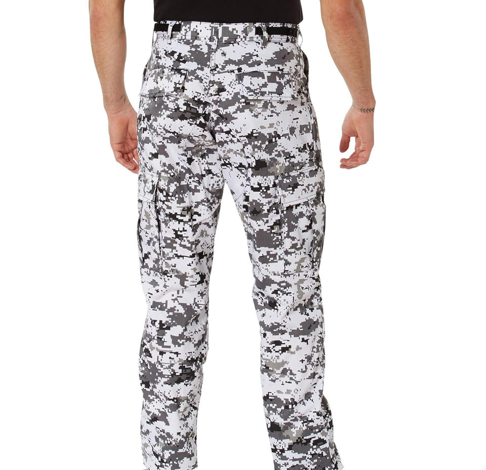 กางเกงคาร์โก้ปีนเขาสำหรับผู้ชายทำจากวัสดุทนทานและลายพรางที่เอวปรับได้