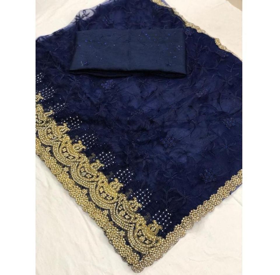ชุดสำหรับงานแต่งงานงานปักมุกหินสำหรับผู้หญิงส่าหรีดูทันสมัยเสื้อเบลาส์น่าดึงดูด