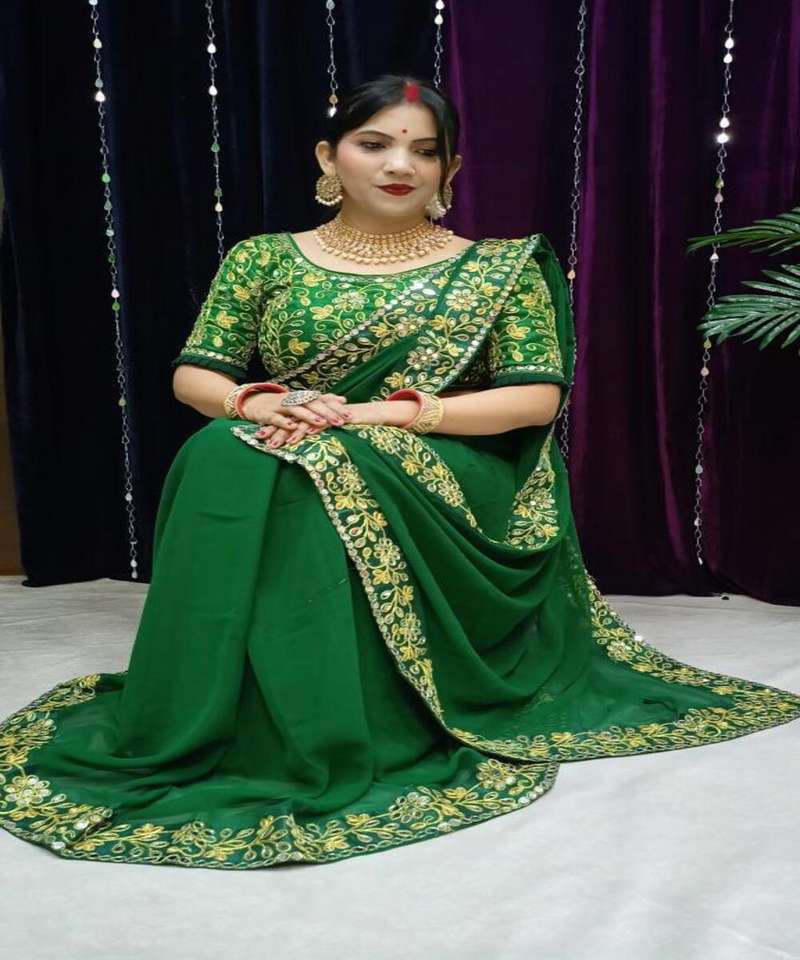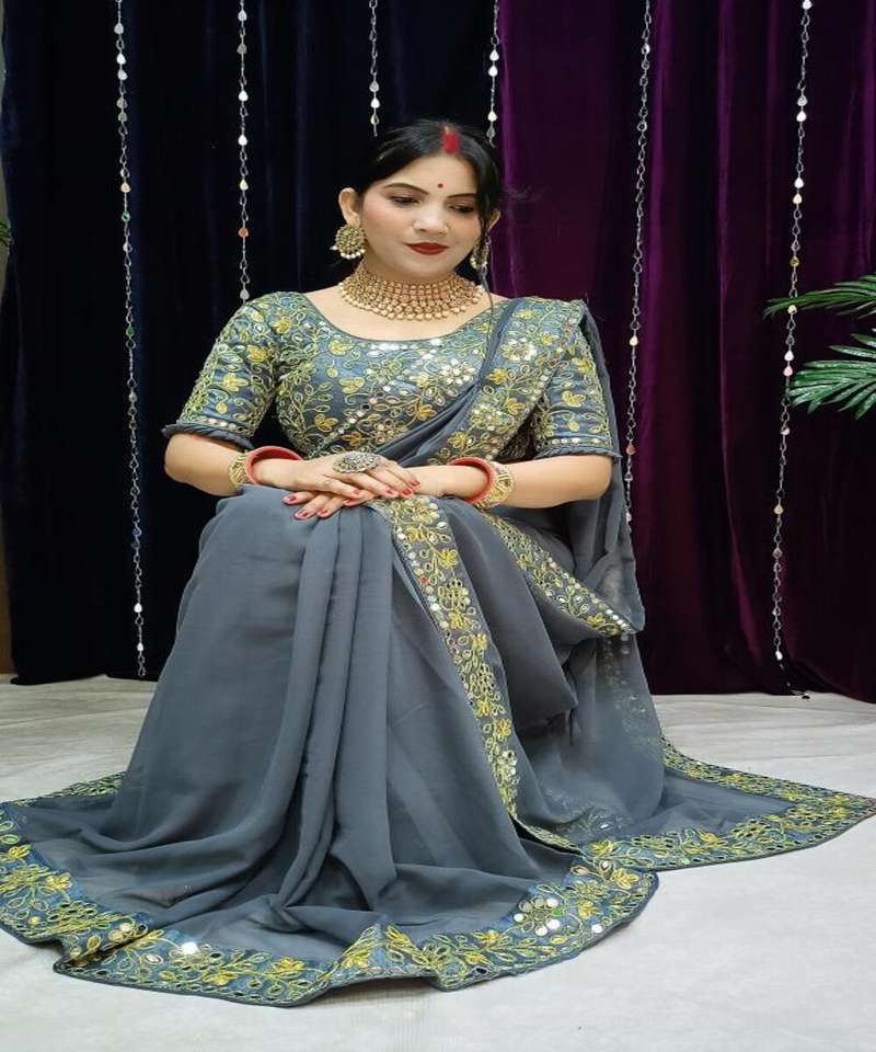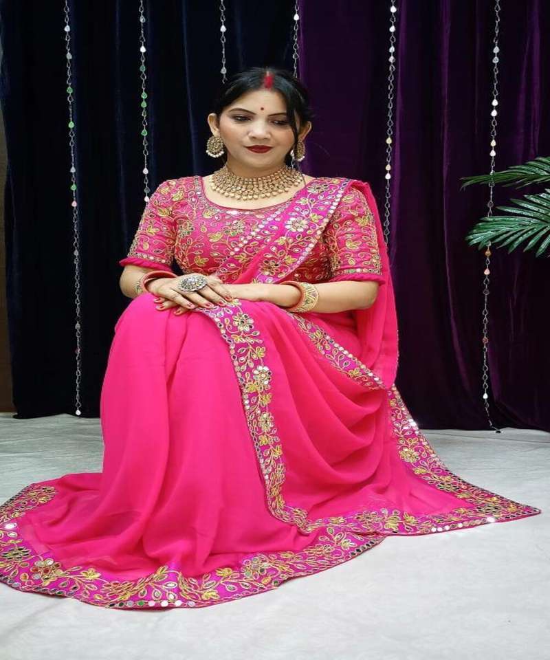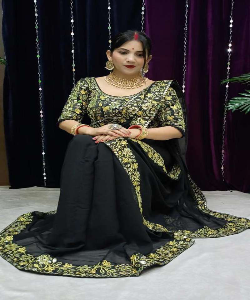 Heavy Embroidery Work Sari with Matte Blouse Piece Indian Women Wear Sari Low Price Wholesale Surat Garment