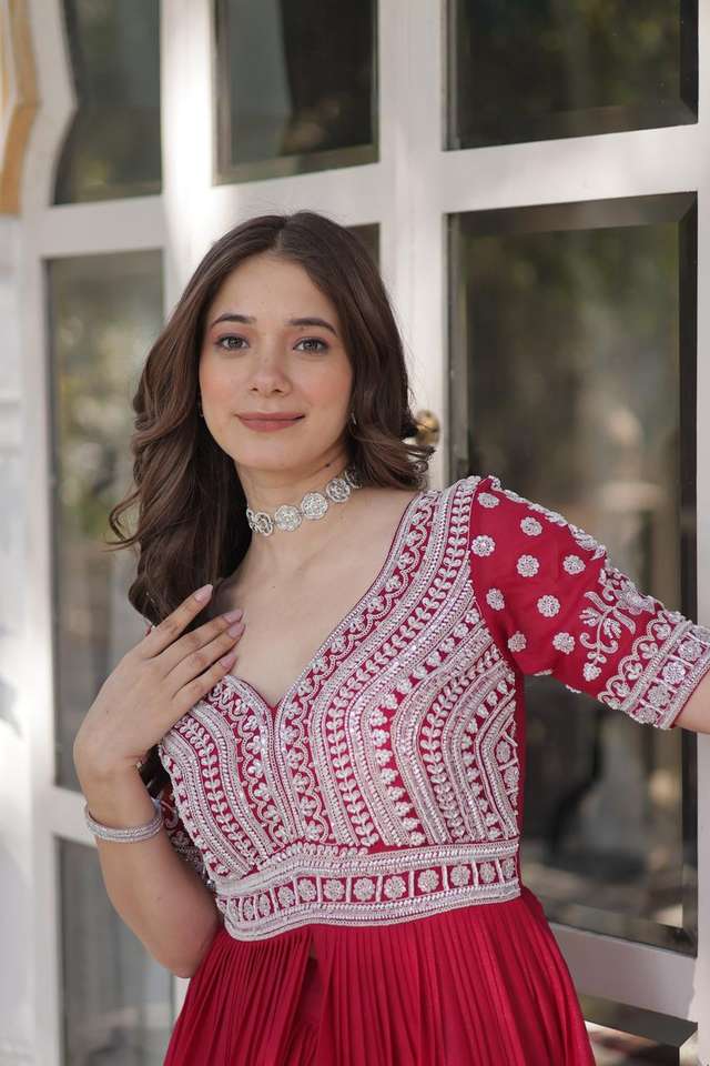 ชื่อผลิตภัณฑ์:Georgette ดาวที่มีการเย็บปักถักร้อยลูกปัดงาน kurti lehenga