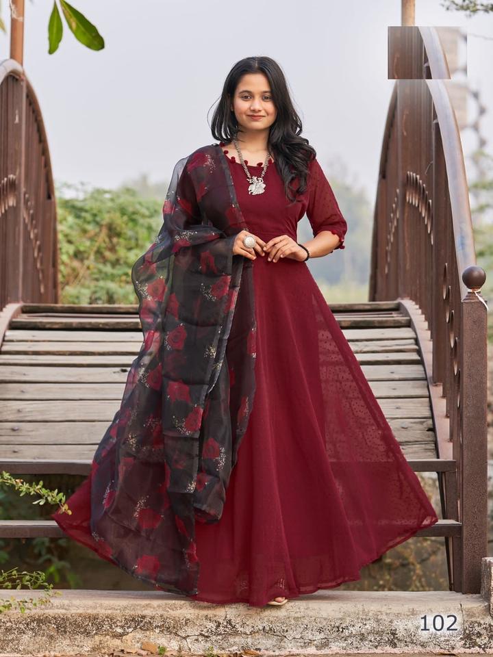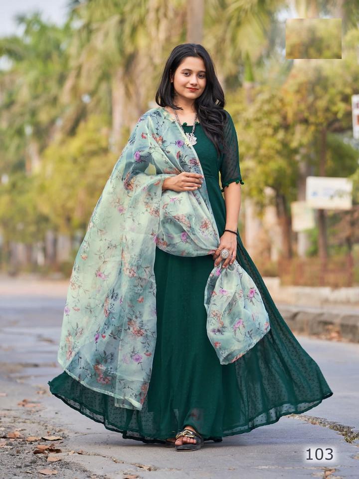 ชุดคุर्ติแบบอินเดียดั้งเดิมผ้าจอร์เจตต์เนื้อหนาพิมพ์ลายดิจิทัล พร้อมผ้าคลุมไหล่สำหรับสุภาพสตรี