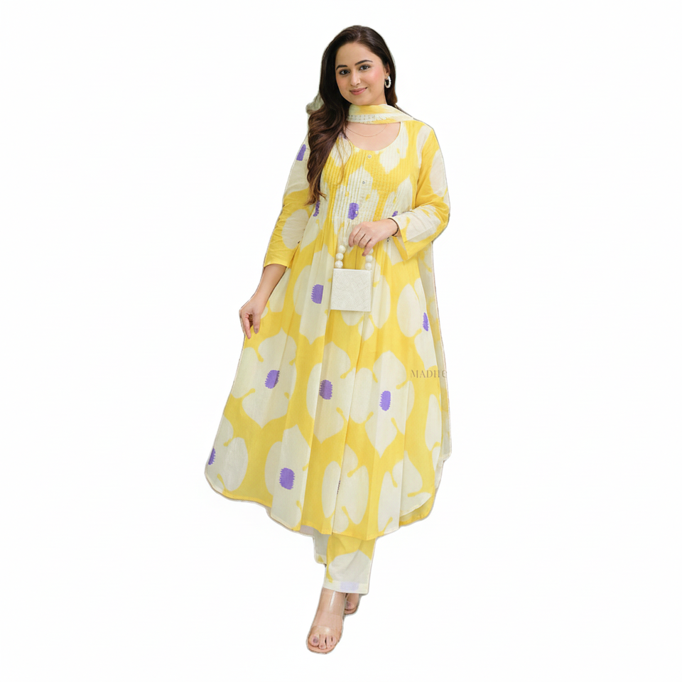 ผ้าจอร์เจียเทียมหนักพิมพ์ลายดอกไม้ฟรีไซส์เย็บยาวยาวเต็มตัวและกางเกงมีชุด dupatta เข้าชุดในราคาต่ำ