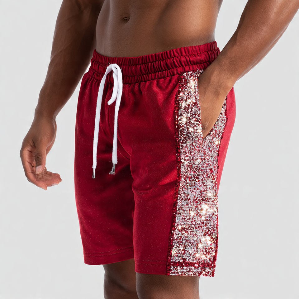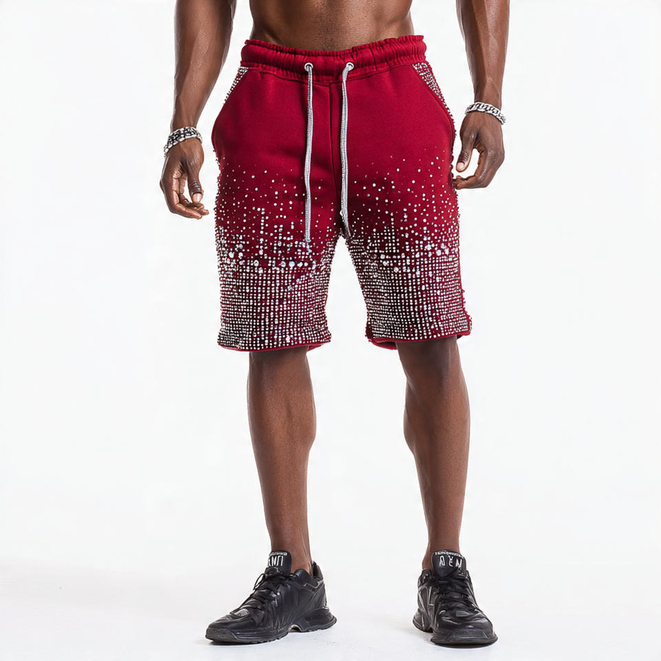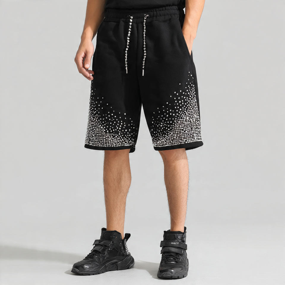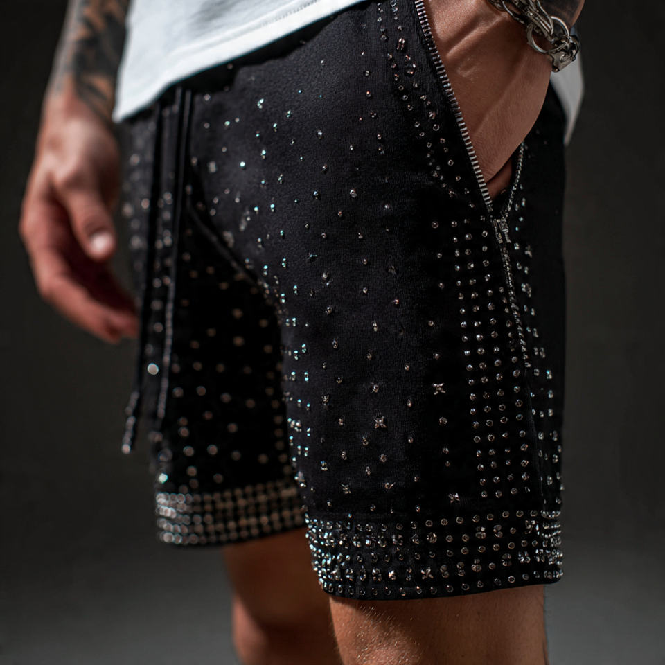 กางเกงขาสั้นผู้ชายประดับพลอยเทียม