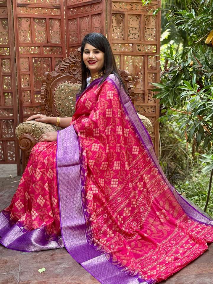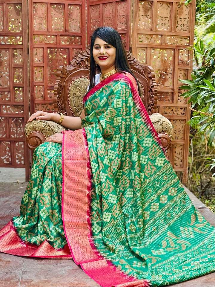 ผ้าส่าหรีพิมพ์ลายดอกไม้หนาพร้อม zari linings มาร์ชและเสื้อเบลาส์เนื้อนุ่มสำหรับงานปาร์ตี้