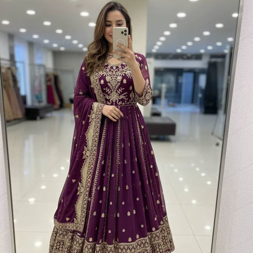 ชุดคุर्ตาผู้หญิง แขนยาว ปักลายหนา 5 มม. ผ้าจอร์เจตต์ แบรนด์ Heavy Fox สำหรับงานปาร์ตี้ทันสมัย แห้งเร็ว ใส่ได้ทุกฤดู ผลิตด้วยมือโดย Ramdev Trading