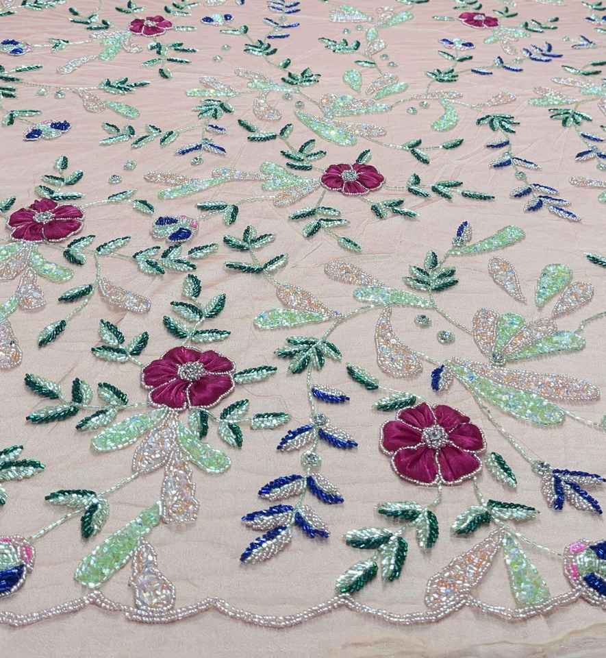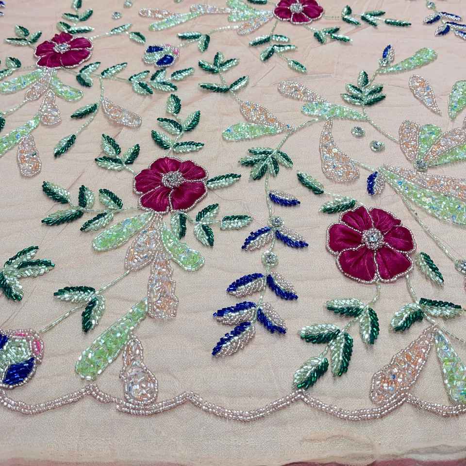 Hand Beaded Lace Fabric