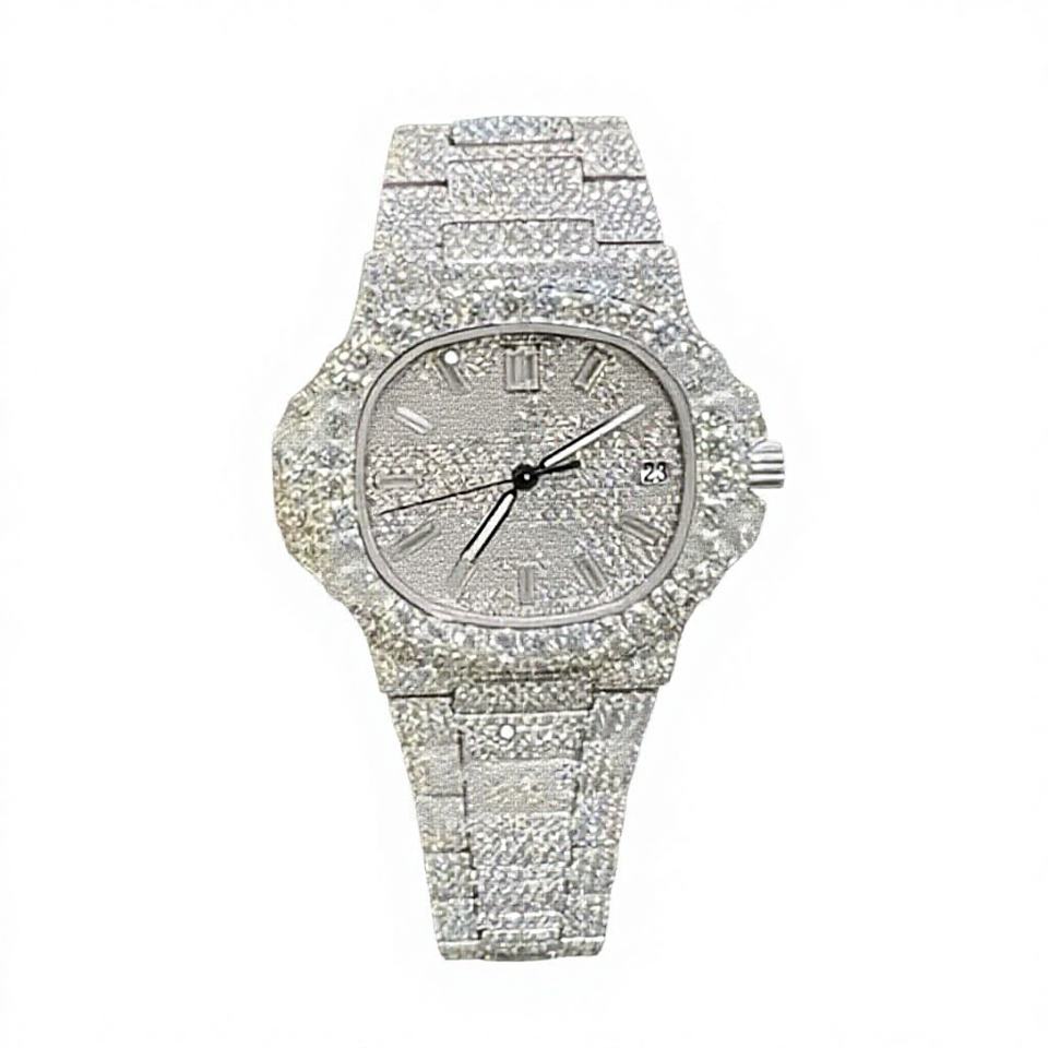 นาฬิกาโมอิสซาไนต์แบบอัตโนมัติเต็มรูปแบบ ดีไซน์หรูหราสไตล์ฮิปฮอปสำหรับผู้ชาย ตัวเรือนสแตนเลสสตีลคุณภาพสูง กันน้ำได้ 10 บาร์