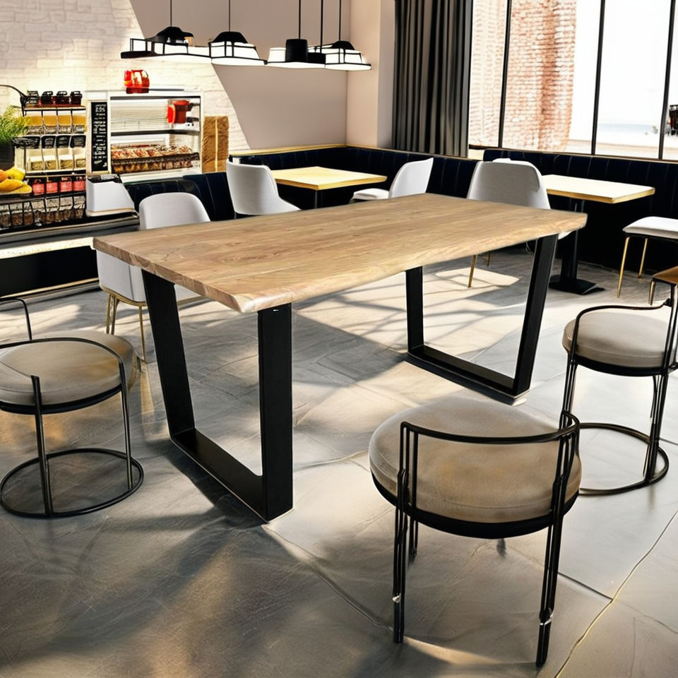 ชุดโต๊ะรับประทานอาหารกลางแจ้งทรงสี่เหลี่ยมผืนผ้า 4 ที่นั่ง ทำจากไม้เนื้อแข็ง ทนทาน เป็นมิตรกับสิ่งแวดล้อม สไตล์โมเดิร์นอุตสาหกรรมหนัก เหมาะสำหรับโรงแรมและห้างสรรพสินค้า