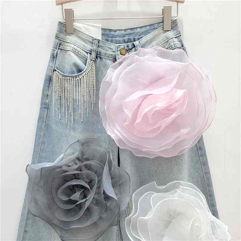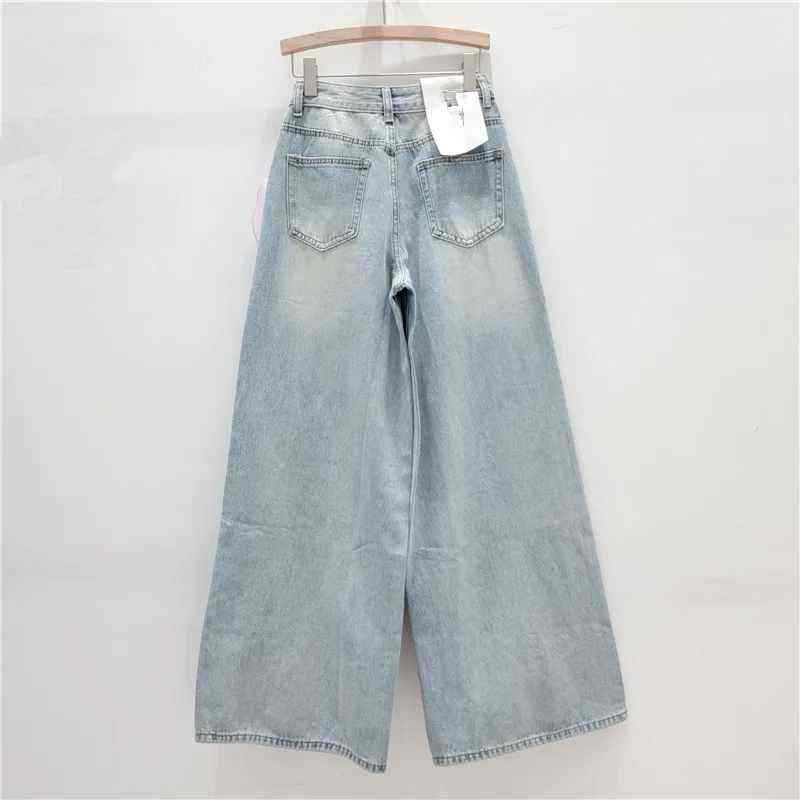 กางเกงยีนส์ขากว้างอเนกประสงค์สไตล์ใหม่สำหรับผู้หญิงดีไซน์แบบสามมิติเอวกลางสำหรับอุตสาหกรรมหนัก