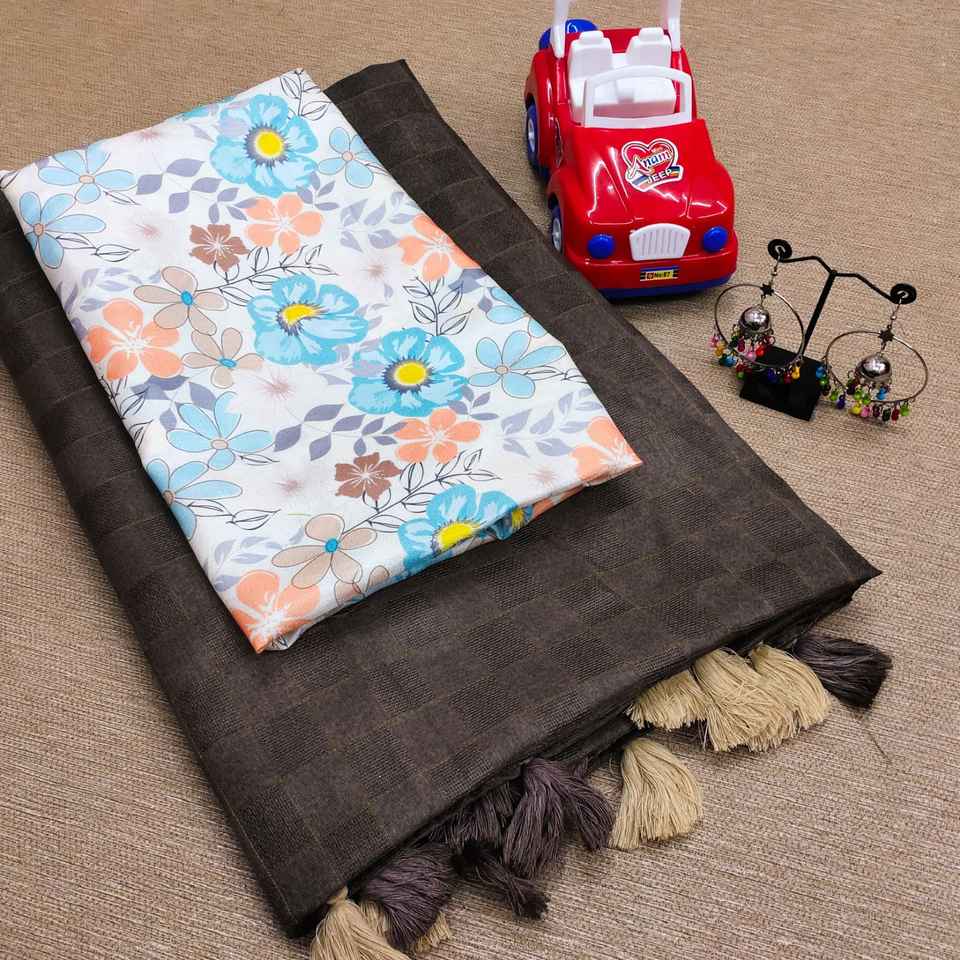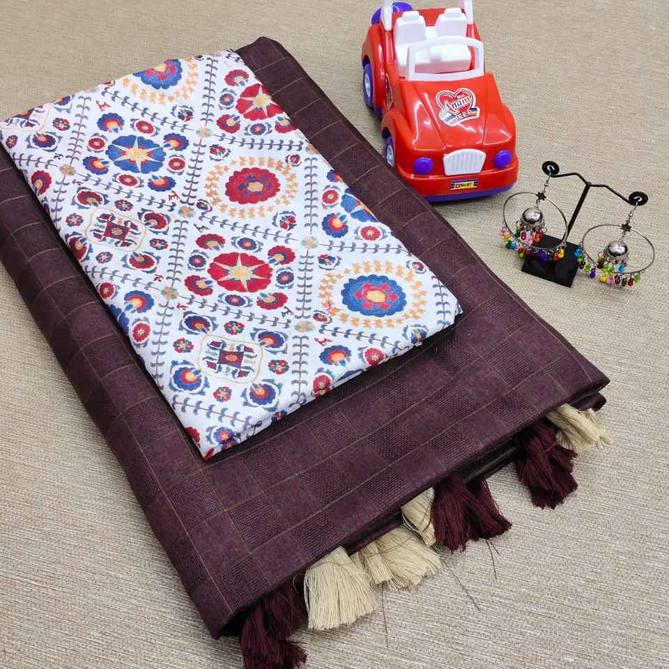 ผ้าไหมสาลี่ปอกระเจาหนา,เสื้อส่าหรีพร้อมผ้าฝ้ายทอและวิจิตราผ้าไหมแท้พิมพ์ลายดิจิตอลพร้อมเครื่องประดับฟรี