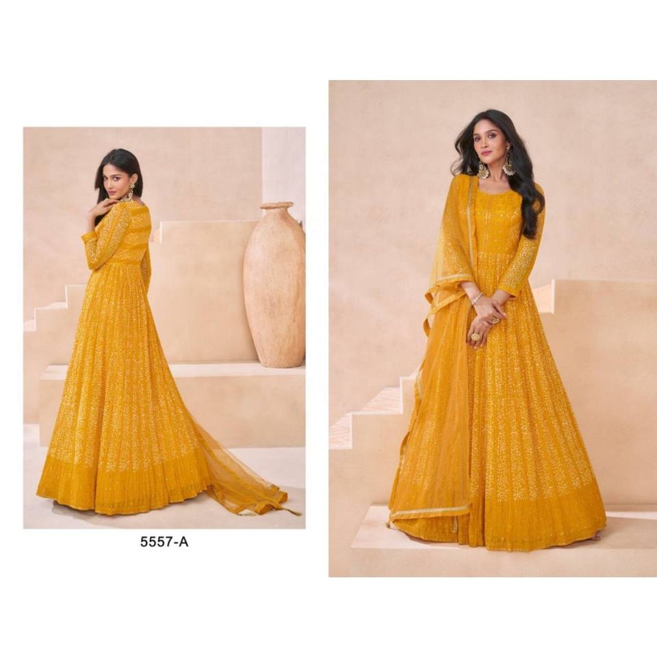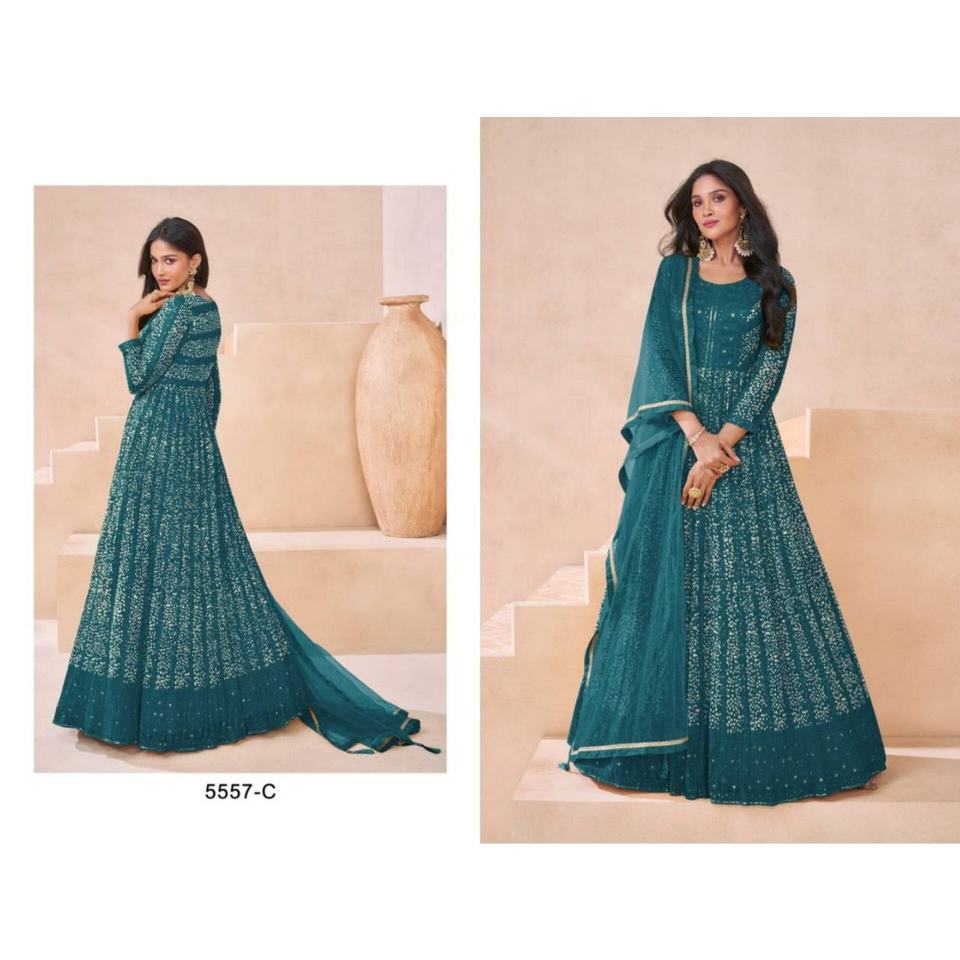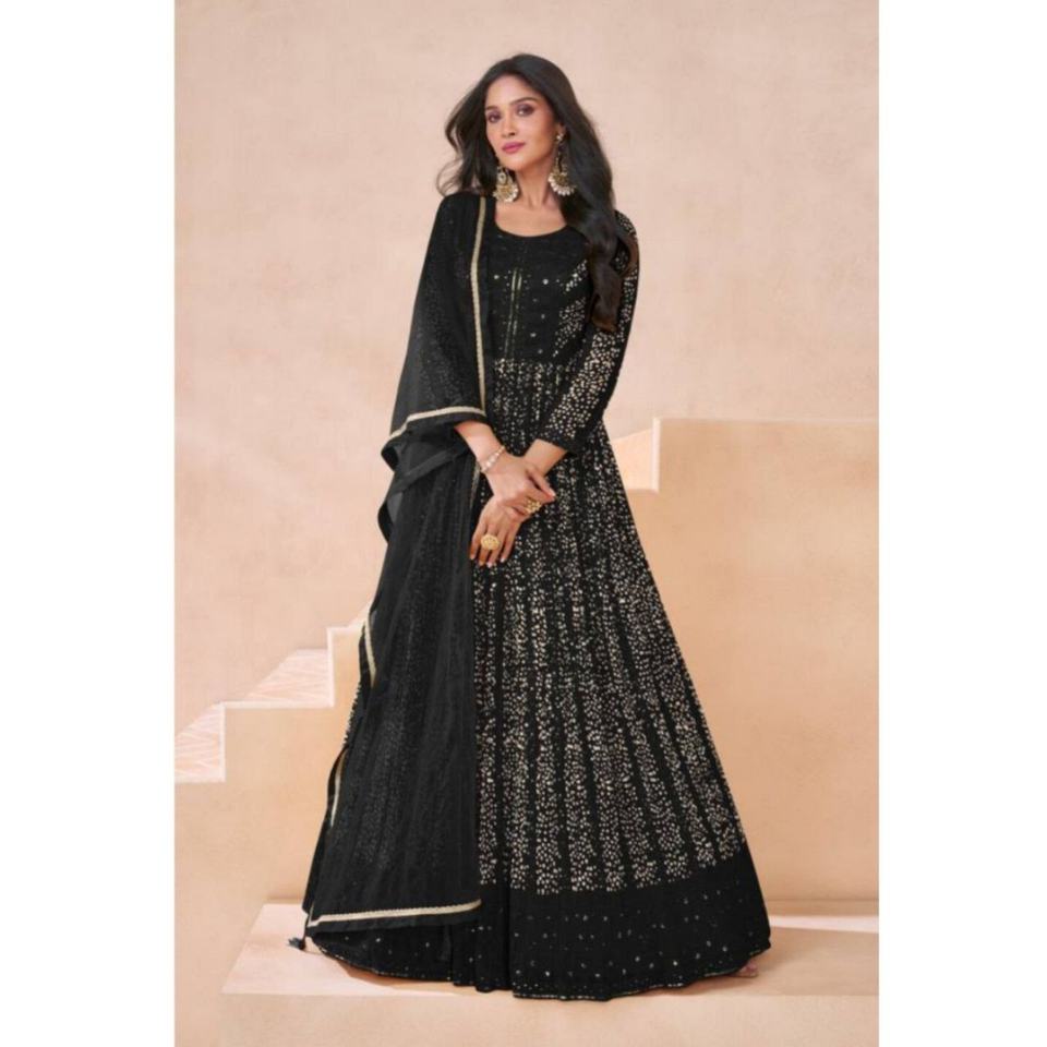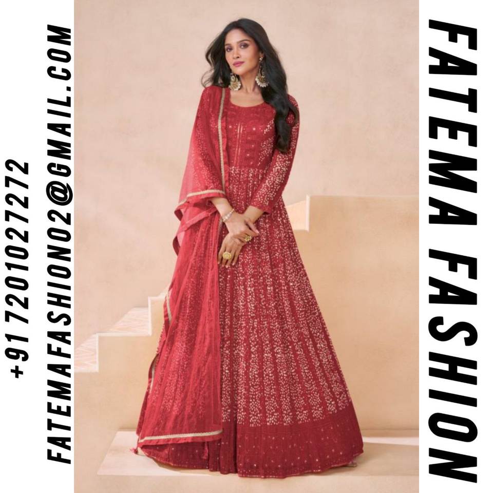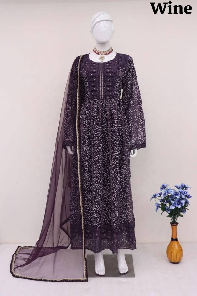 ชุดเดรสยาวแบบอานาร์กาลีผ้าจอร์เจตต์ฟ็อกซ์เนื้อหนาแบบกึ่งเย็บปักลาย รุ่นล่าสุดปี 2024 สไตล์ปากีสถาน สำหรับงานปาร์ตี้ พร้อมผ้าคลุมไหล่แบบอินเดียสำหรับสุภาพสตรี