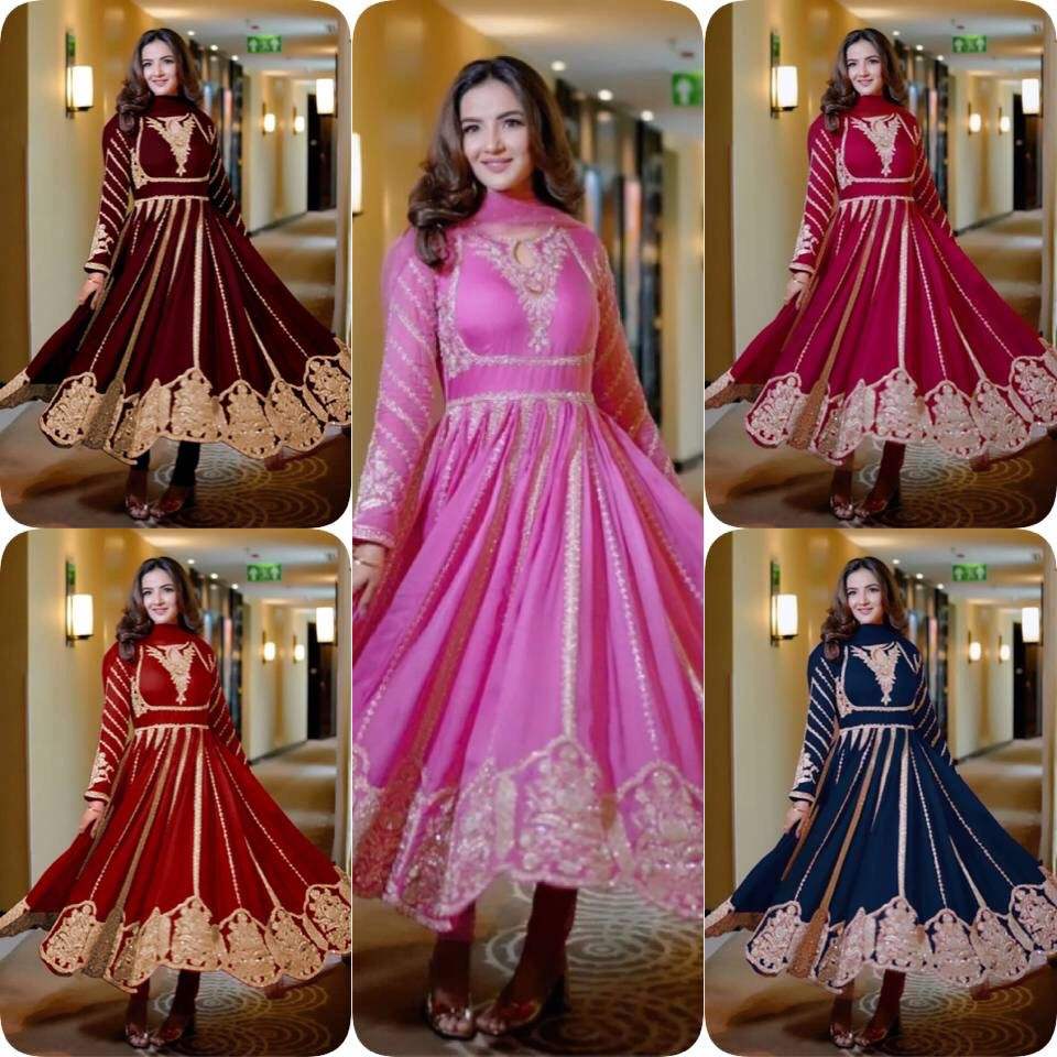 Product Name:Faux Georgette Sequence Embroidery Gown Bottom With Dupatta