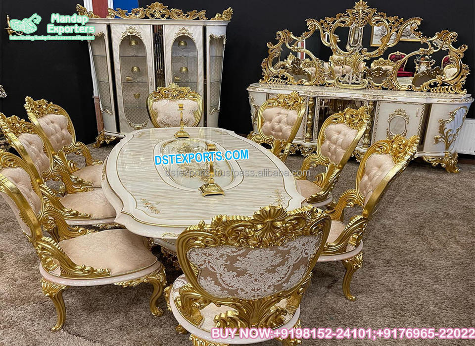 ชุดโต๊ะรับประทานอาหารสไตล์เฮฟวี่ลีฟ งานแกะสลักอย่างประณีต ชุดโต๊ะรับประทานอาหารไม้แกะสลักสไตล์หรูหรา ชุดเฟอร์นิเจอร์ห้องรับประทานอาหารสไตล์ใหม่ สหรัฐอเมริกา
