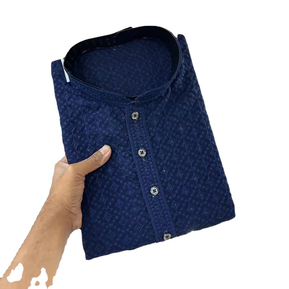 งานปักหนักด้านหน้าและด้านหลังด้วยลายลักนูวี เสื้อคุर्ตาผู้ชายสำหรับขายส่ง