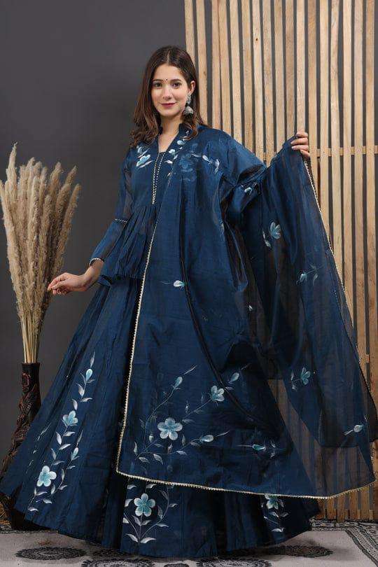 ชื่อผลิตภัณฑ์:ภาพวาดมือ Chanderi lehenga และเสื้อ dupatta
