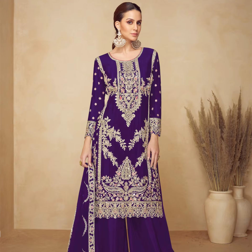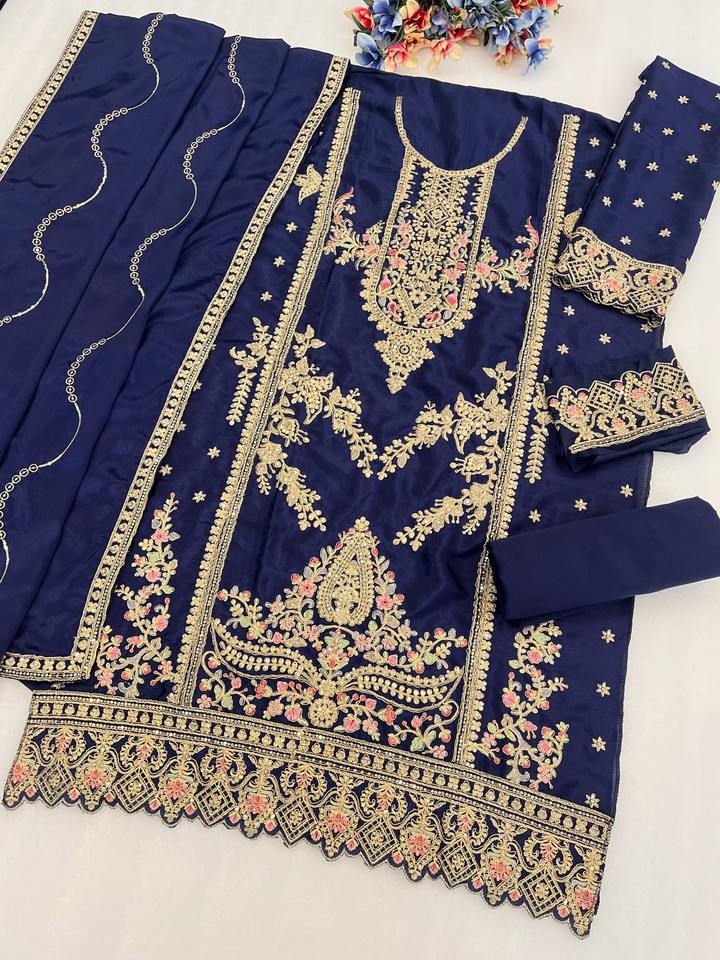 ผ้าไหมวิสโคสชีนอนเนื้อหนา พร้อมงานปักดิ้นหนักแบบปากีสถาน สำหรับตัดชุดเดรส