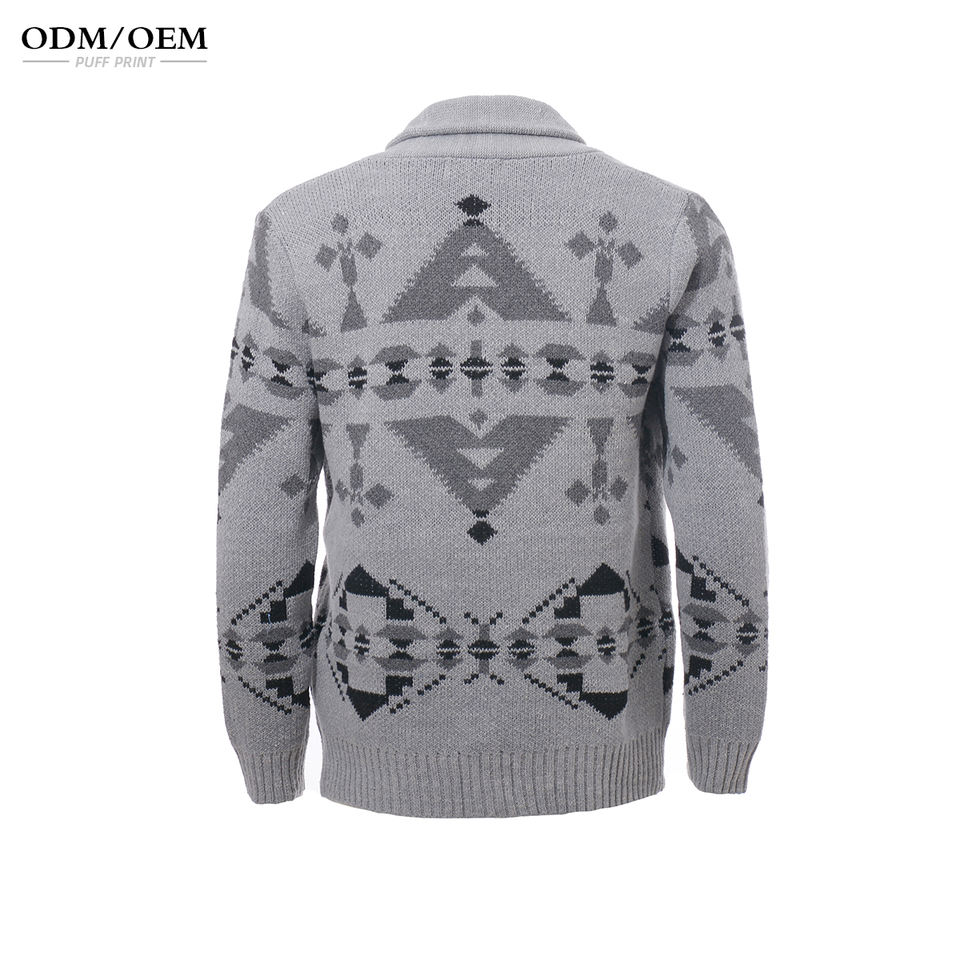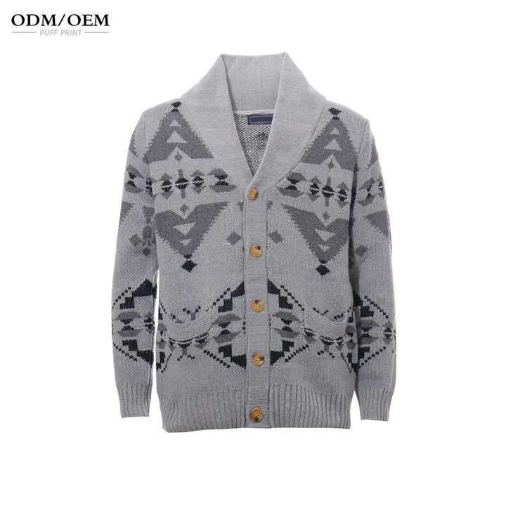 เสื้อสเวตเตอร์คาร์ดิแกนผู้ชาย ผ้าแคชเมียร์ ดีไซน์ปกคลุมไหล่แบบหรูหรา ผ้าถักลายริบหนา แขนเสื้อพับได้ ติดกระดุมแบบสมาร์ท