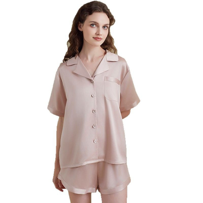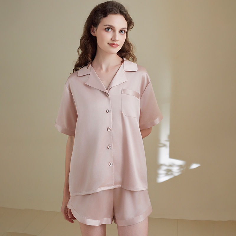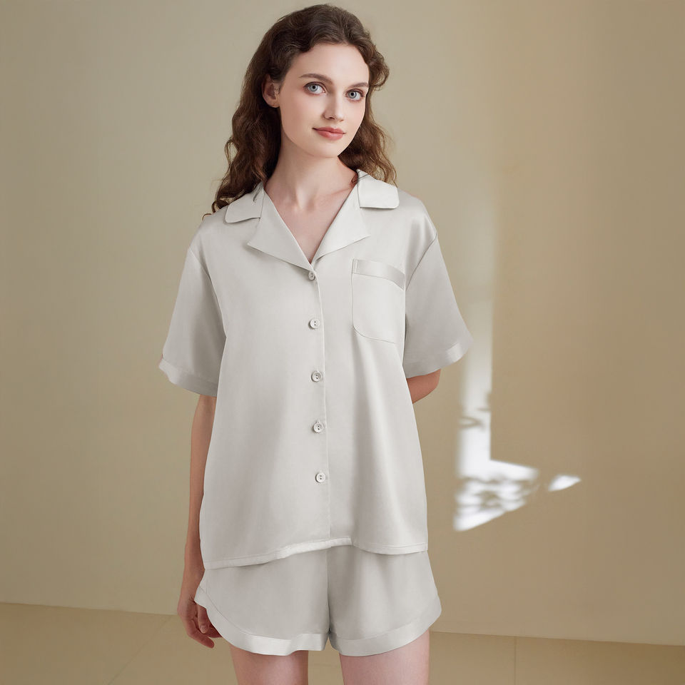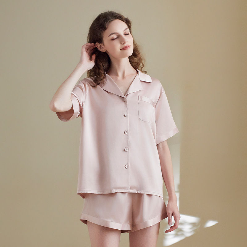 ชุดนอนผ้าซาตินหนานุ่มสำหรับผู้หญิง ผ้ายืด/โพลีเอสเตอร์ ซักแล้วไม่หด ระบายอากาศได้ดี เอวยางยืด นุ่มสบาย แฟชั่นฤดูร้อนใหม่ ODM
