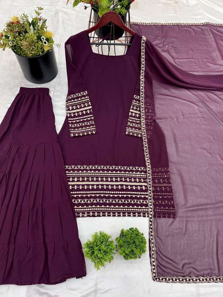ชื่อผลิตภัณฑ์:Georgette sequence การเย็บปักถักร้อยด้านบน sharara Palazzo กับ dupatta
