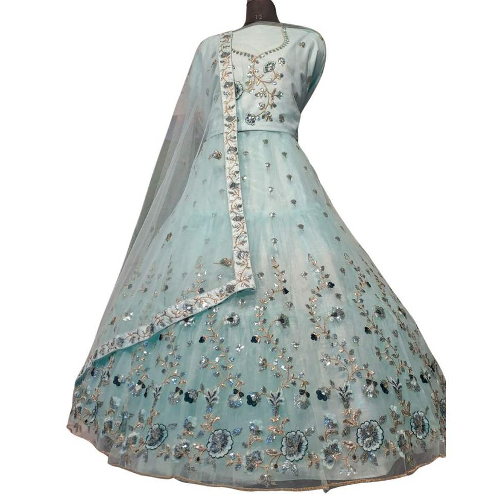 ชุดเลเฮนกาโชลีผ้าตาข่ายปักเลื่อมหนัก พร้อมกระโปรงบาน 3 เมตร ผ้าคลุมไหล่ 2.5 เมตร ขอบสี่ด้าน ผ้าคลุมไหล่ยาว 1.2 เมตร เหมาะสำหรับงานปาร์ตี้ฤดูหนาว/ฤดูร้อนแบบทันสมัย