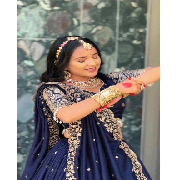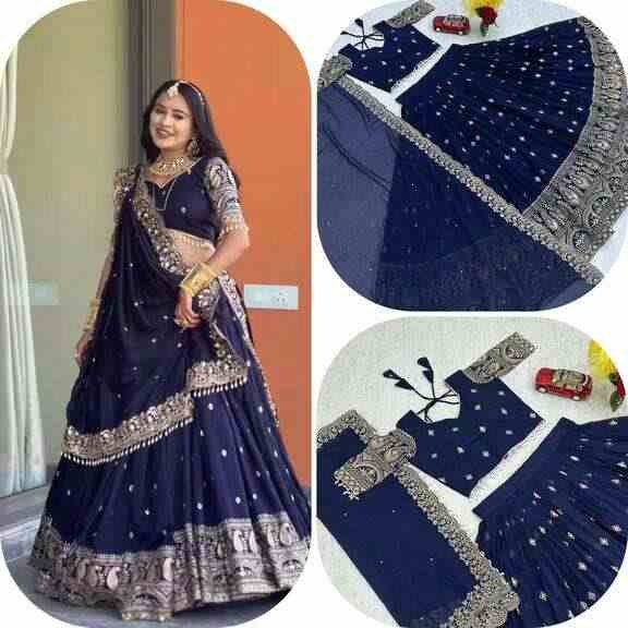 Heavy Thread Embroidered Fully Stitched Faux Georgette Lehenga Choli Set with Beautiful Handcrafted Detailing Matching Dupatta