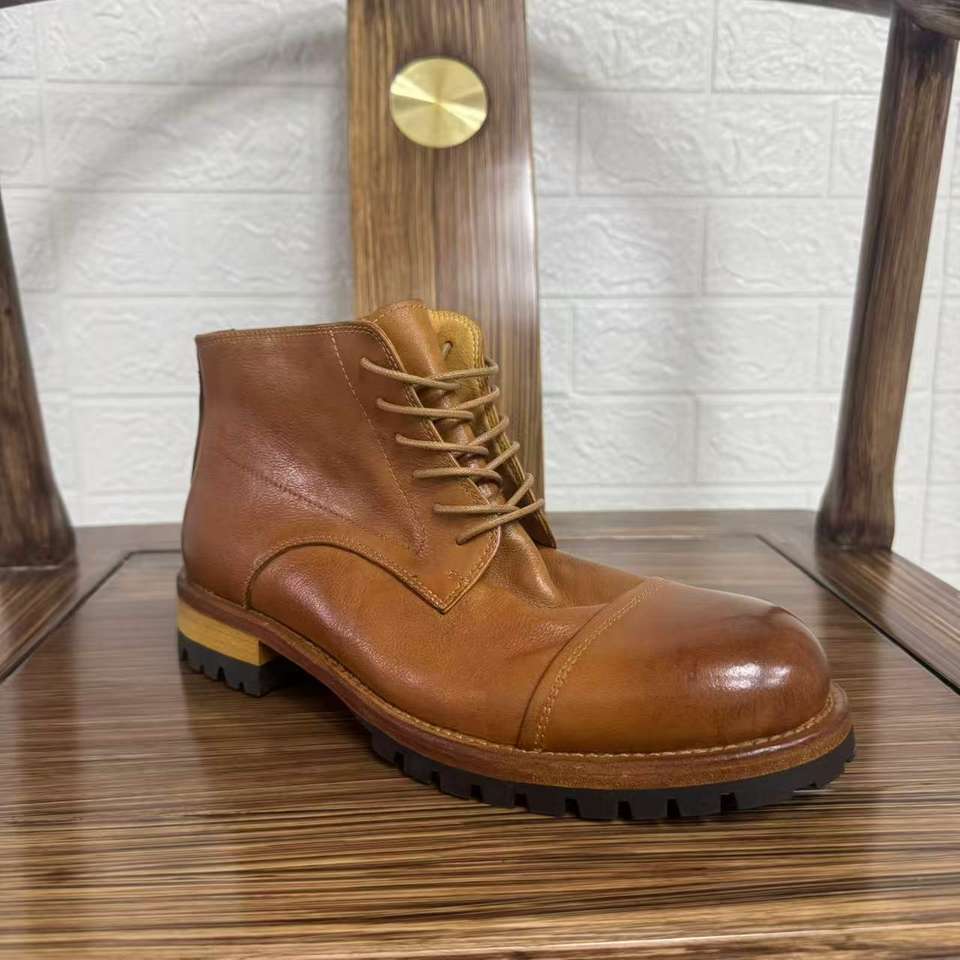 รองเท้าบูทผู้ชายหนังม้าแท้ฟอกหนัก สไตล์เรโทร ทำมือ คุณภาพสูง แบบสามข้อต่อ หุ้มข้อสูง สำหรับทำงาน