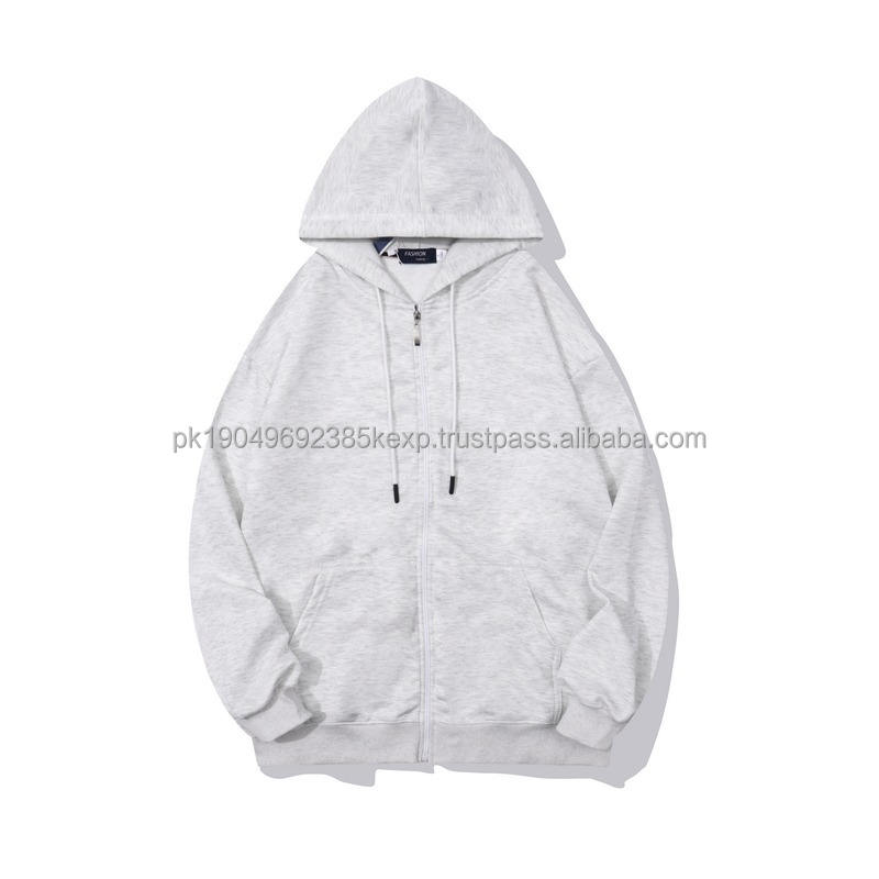 เสื้อฮู้ดดี้ผ้าโพลีเอสเตอร์คอตตอน 100% น้ำหนักมาก พิมพ์ลายปักตามสั่ง ทรงโอเวอร์ไซส์ ซิปหน้า สำหรับผู้ชายและผู้หญิง