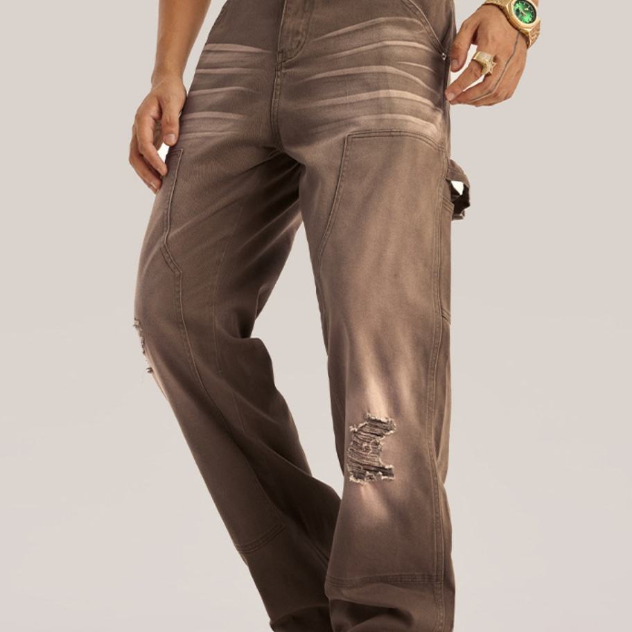 ชื่อสินค้า:กางเกงยีนส์ผ้าเดนิมน้ำหนักมาก ฟอกสี ขาดเซอร์ สำหรับผู้ชาย