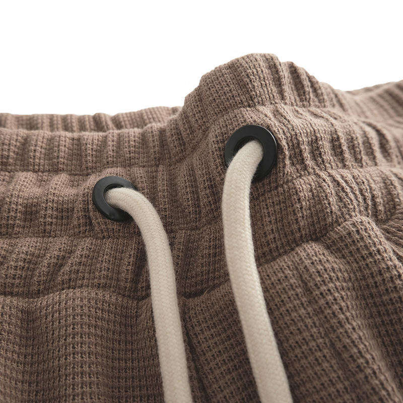 กางเกงขาสั้นผ้าวาฟเฟิลสำหรับผู้ชายผ้าโพลีเอสเตอร์ผ้าถักเนื้อแข็งเป็นมิตรต่อสิ่งแวดล้อมพร้อมเอวยางยืดสูงแห้งเร็ว