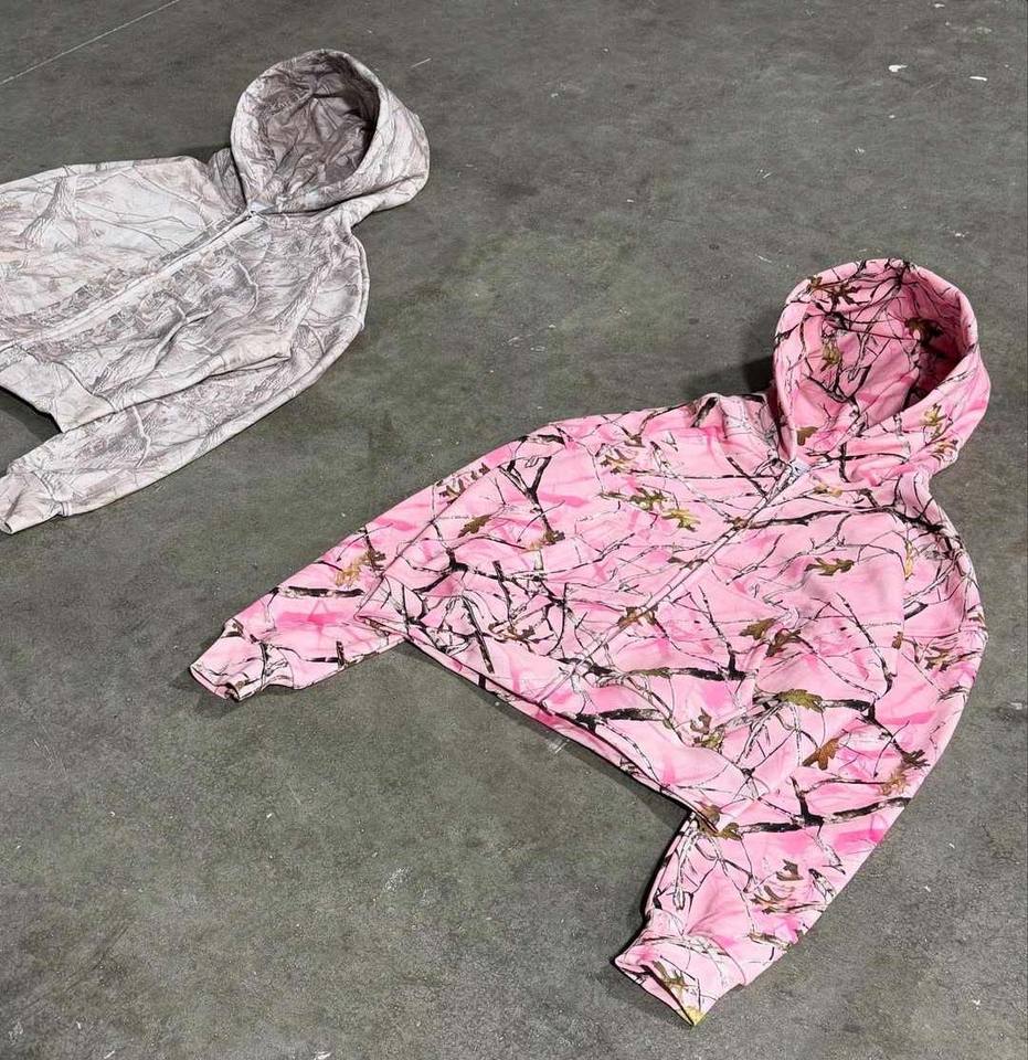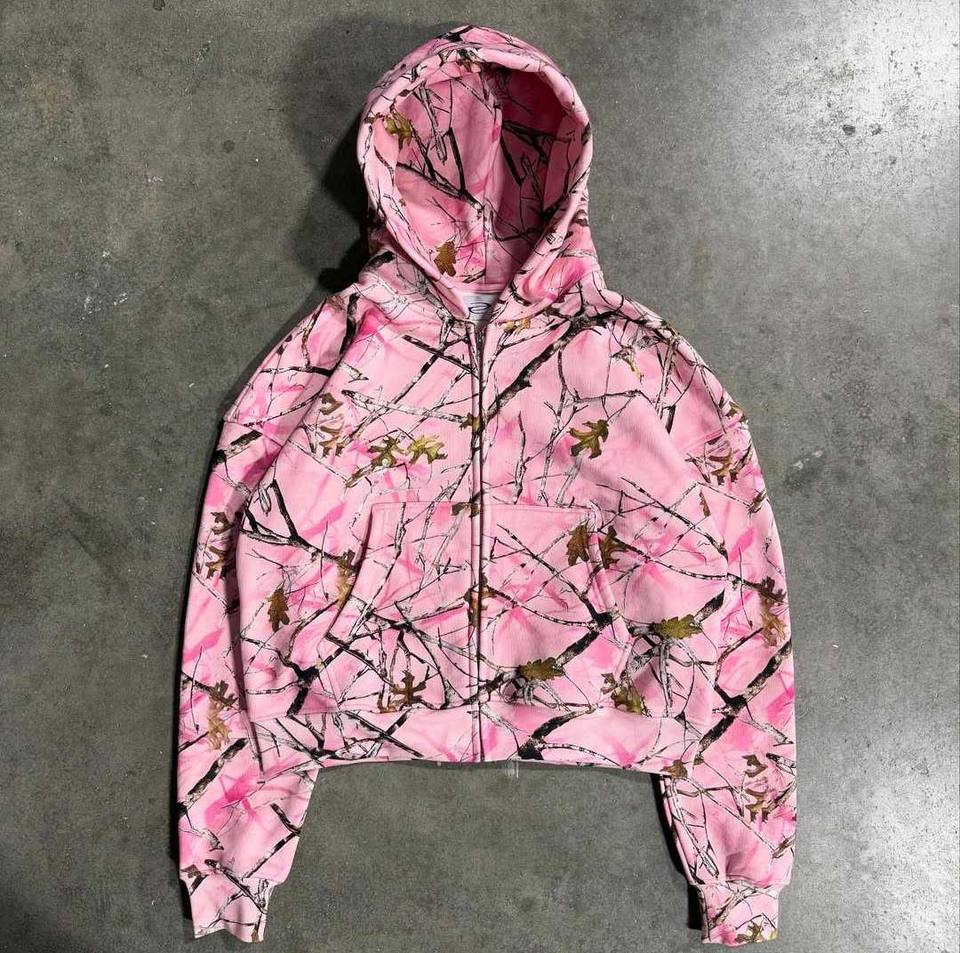 เสื้อมีฮู้ดมีซิปน้ำหนักมากเสื้อผ้ากีฬาธรรมดาผ้าฝ้ายพิมพ์ลายแนวสตรีทเสื้อครอปโอเวอร์ไซส์แบบกำหนดเอง