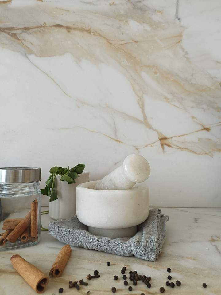 ครกและสากเซรามิกสีขาวหนา ทนทาน เป็นมิตรกับสิ่งแวดล้อม เกรดอาหาร ล้างมือเท่านั้น สำหรับใช้ในครัว
