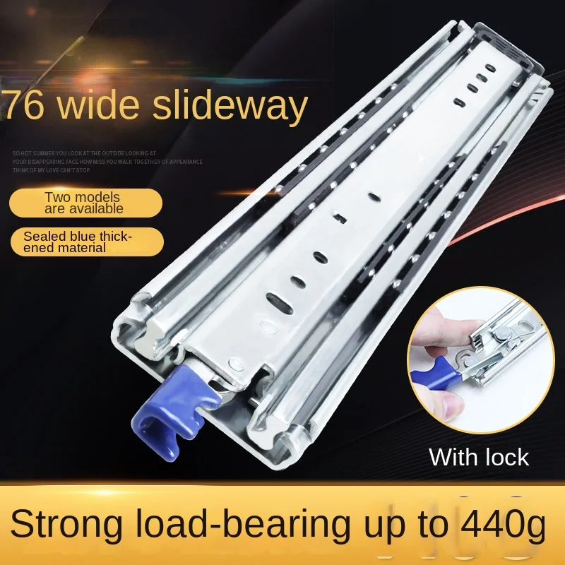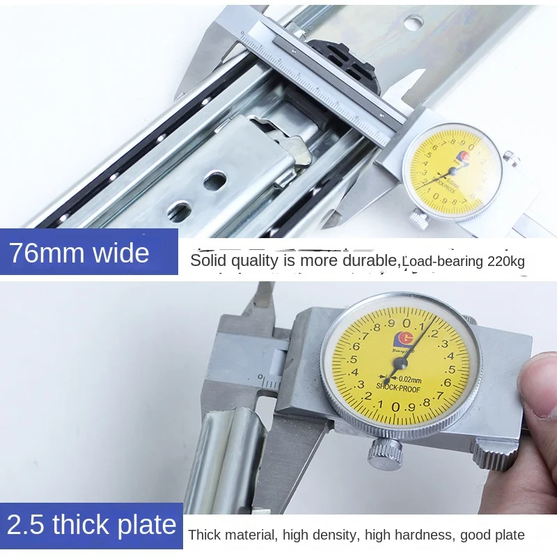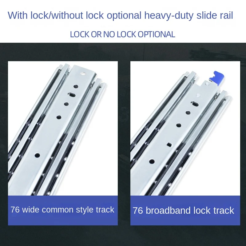 รางลิ้นชักสแตนเลสแบบหนาสำหรับงานหนัก กว้าง 76 นิ้ว สำหรับรถพ่วงอุตสาหกรรม รางลิ้นชักสามตอน สำหรับห้องน้ำสไตล์โมเดิร์น
