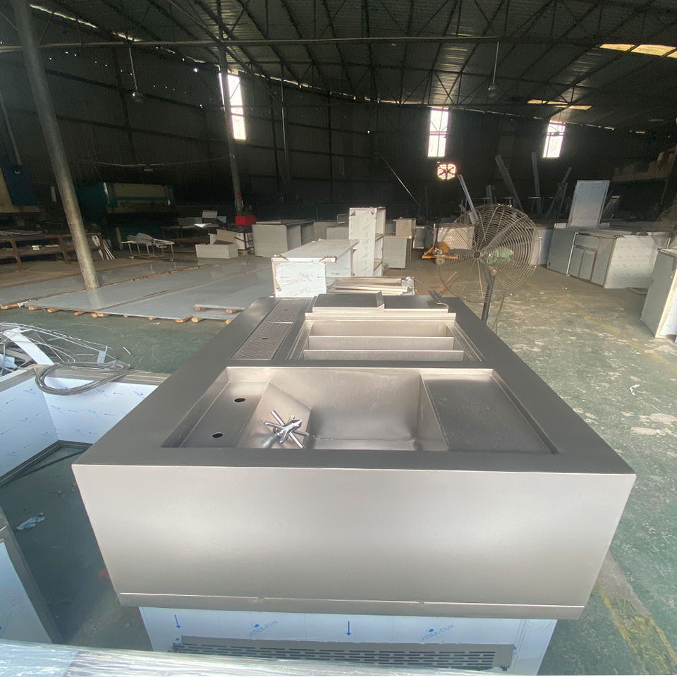สถานีผสมสแตนเลสแบบหนาพิเศษ ขัดเงา กันน้ำ พร้อมตู้ล็อคได้ สำหรับงานจัดเลี้ยงกลางแจ้ง