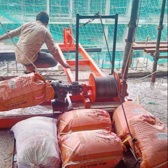 เครื่องยกของหนักสำหรับงานก่อสร้าง พร้อมมอเตอร์ไฟฟ้า กล่องเกียร์ ดรัม และโครงสร้างเหล็ก เพื่อการขนย้ายวัสดุอย่างมีประสิทธิภาพ