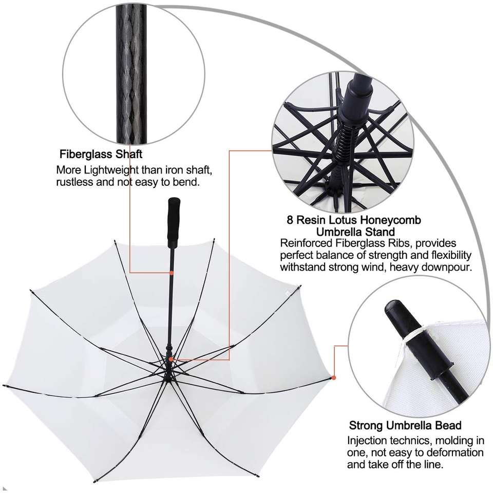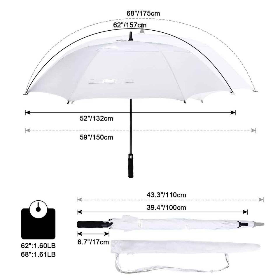 ร่มกอล์ฟกันลมขนาดใหญ่พิเศษ 68 นิ้ว แบบสั่งทำพิเศษ สีขาวล้วน สองชั้น