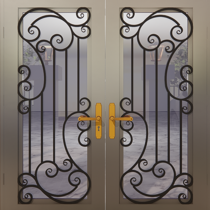 ประตูหน้าทางเข้าแบบหนักพร้อมกระจกสองชั้นและแบบเหล็กขึ้นรูปที่ทันสมัยสำหรับใช้ในที่พักอาศัยหรือในเชิงพาณิชย์