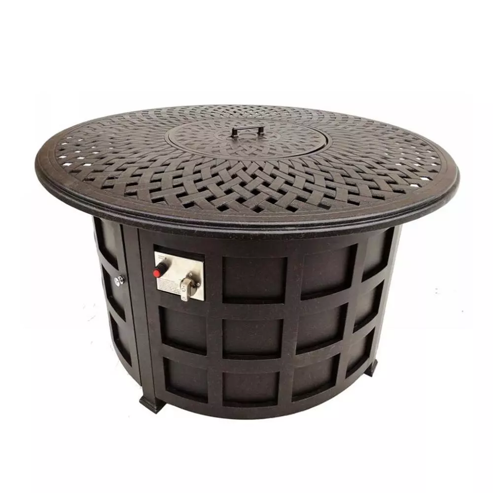 โต๊ะหลุมไฟฐานไฟกราไฟกลมขนาด20นิ้วทันสมัยขนาดกะทัดรัดพร้อมหินลาวาฝาครอบเหล็กกันน้ำสำหรับไฟโพรเพนกลางแจ้ง