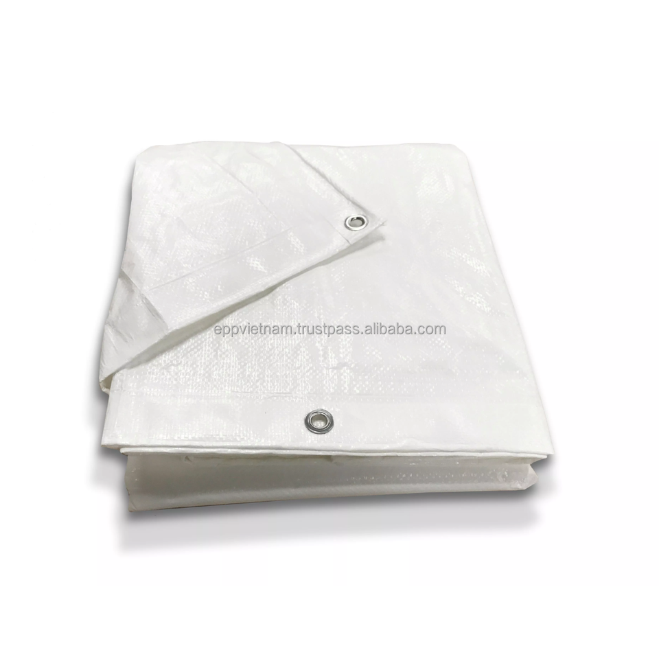 ผ้าใบกันน้ำสีขาวทนทานป้องกันรังสียูวีสำหรับรถยนต์ตั้งแคมป์สวนลานและใช้งานกลางแจ้งทั่วไป