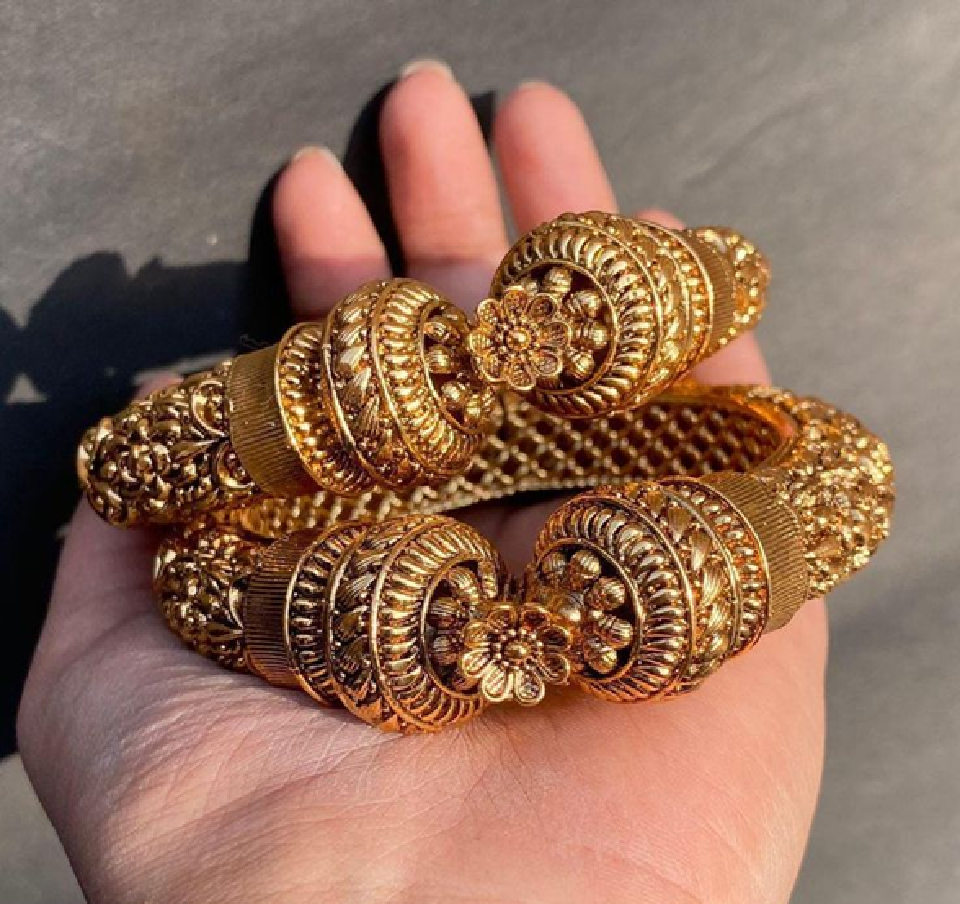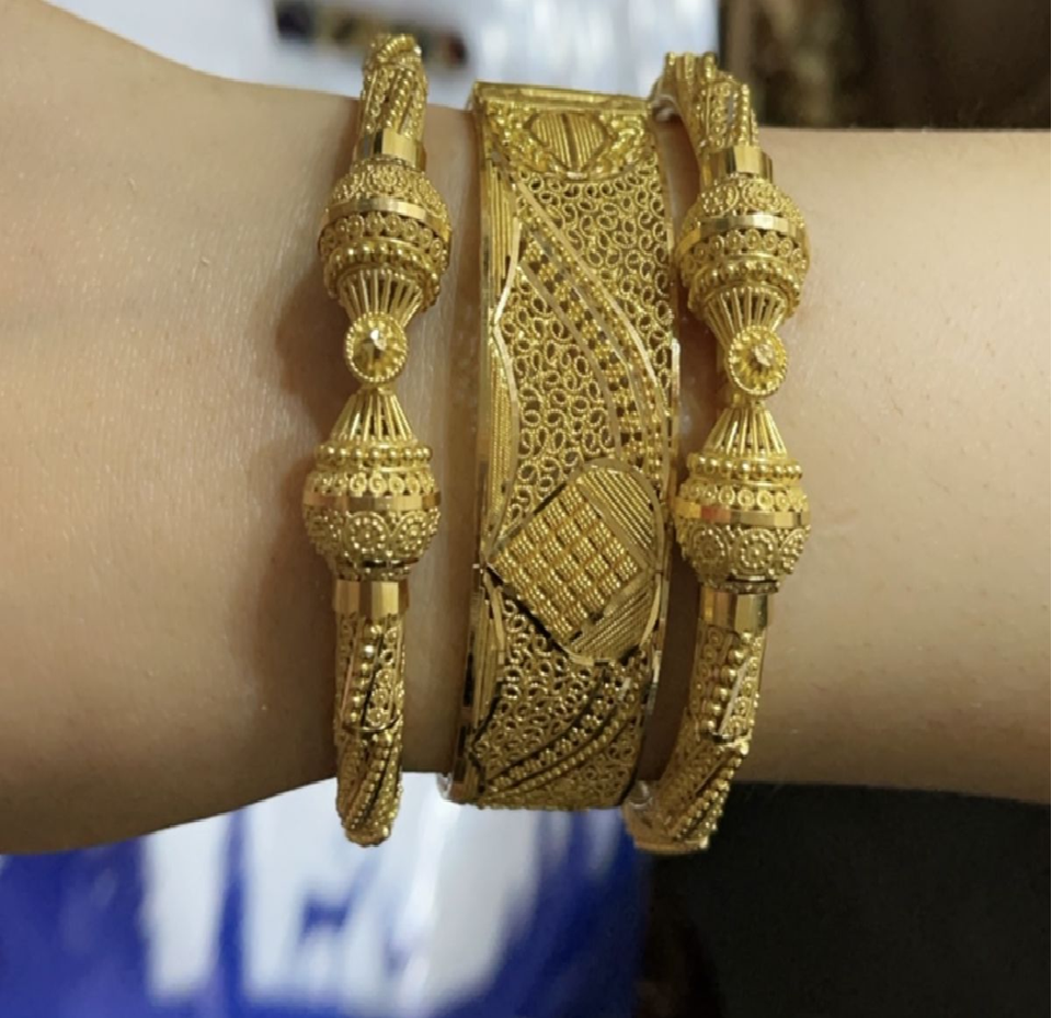 กำไลทองเหลืองชุบทองแบบดั้งเดิม หนัก ประดับด้วยลายดอกไม้ มีจำหน่ายในราคาขายส่ง