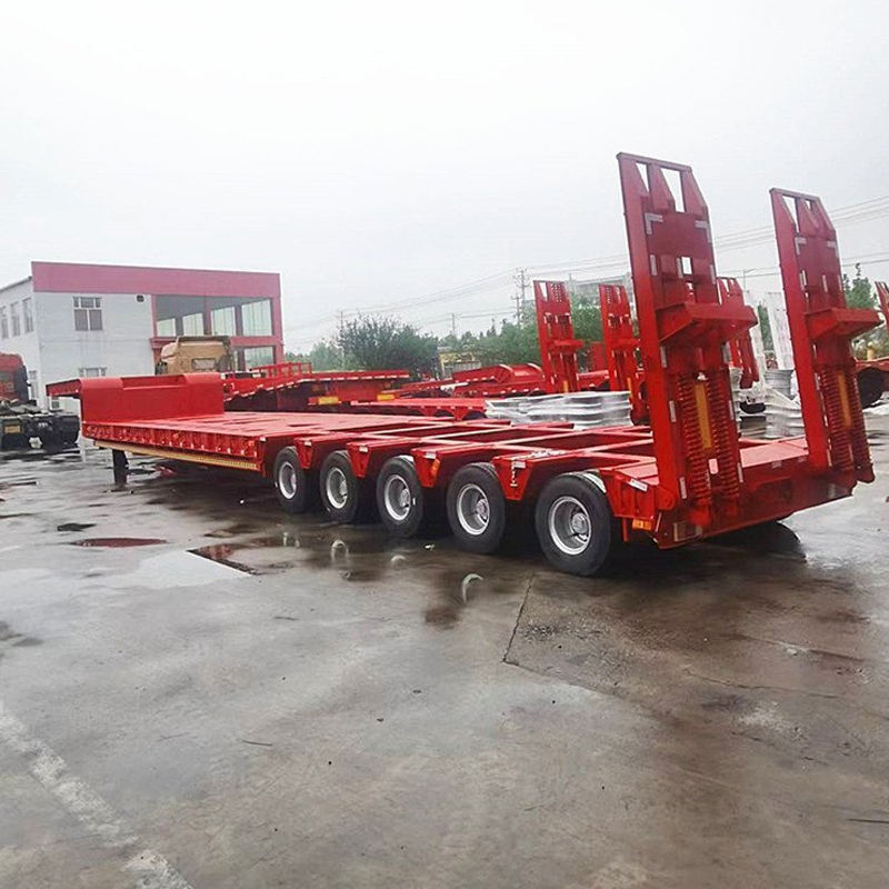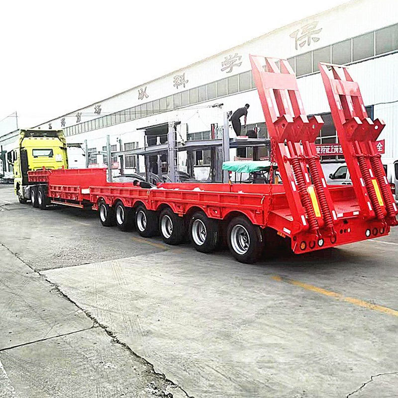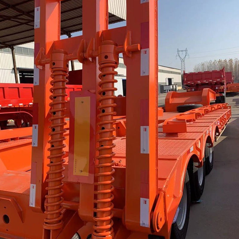 รถบรรทุกหนักแบบกึ่งพ่วงพื้นเหล็กแบบแขวน พร้อมบันไดพับได้ปรับแต่งได้ แผ่นขนส่ง 15-20 ตัน ยี่ห้อ JIEFANG