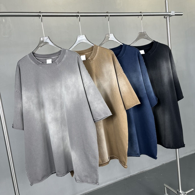 เสื้อยืดคอกลม305gsm สำหรับผู้ชายทำจากผ้าฝ้าย100% โลโก้ออกแบบได้ตามต้องการทำให้ไหล่ตกโอเวอร์ไซส์