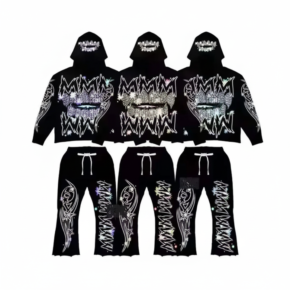 เสื้อวอร์มผ้าฝ้าย100% เต็มตัวแห้งเร็วพิมพ์ลายพลอยเทียมระบายอากาศได้ดีใส่ได้ทั้งชายและหญิงเสื้อผ้าขนาดใหญ่สำหรับฤดูหนาว