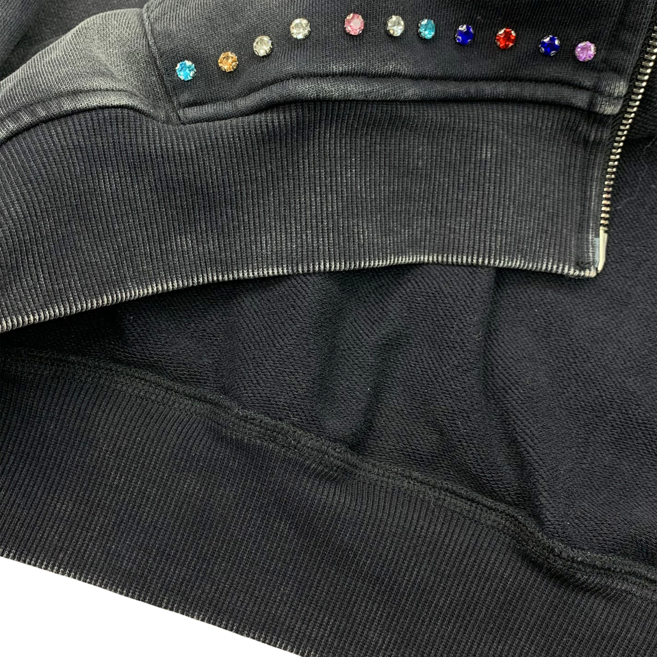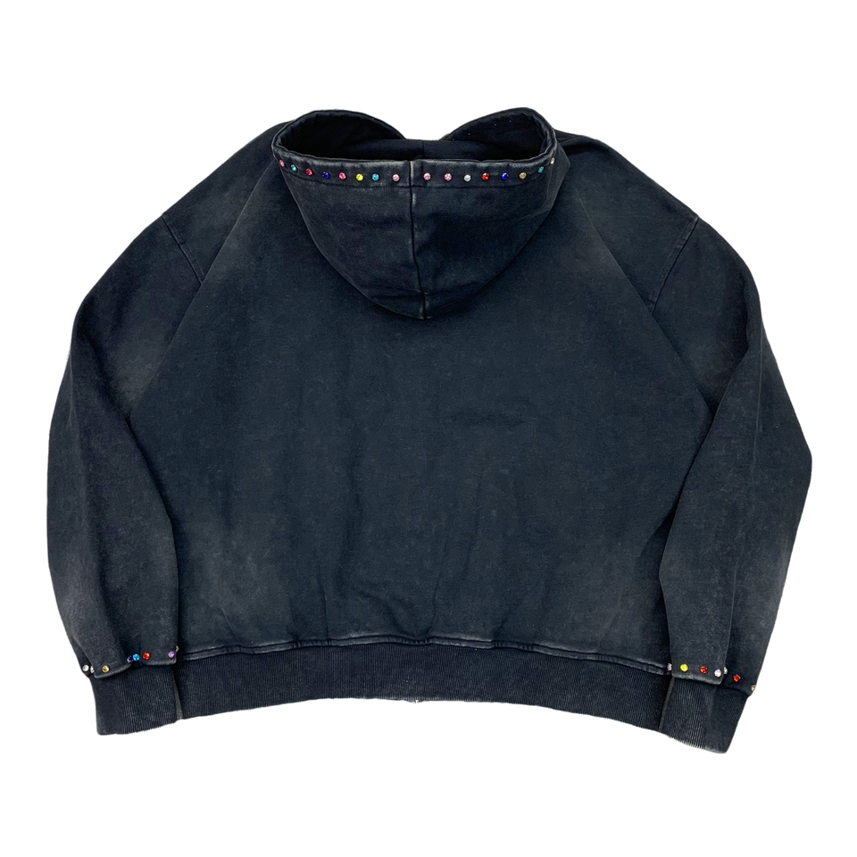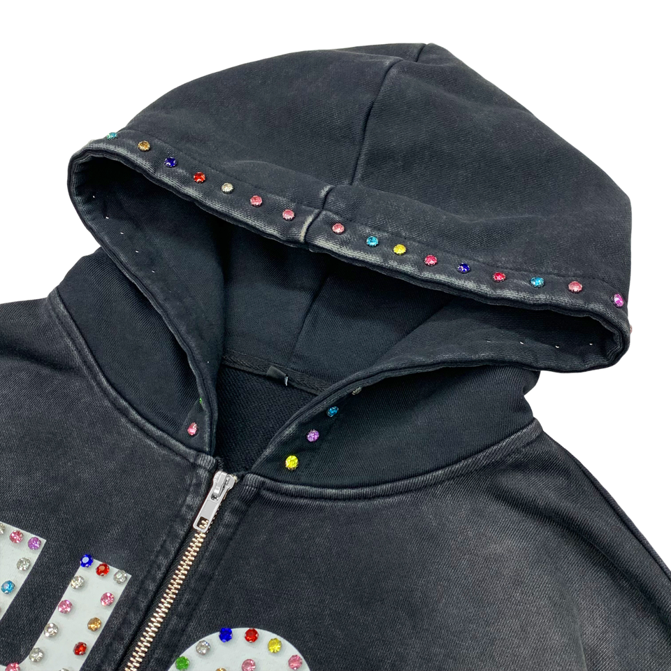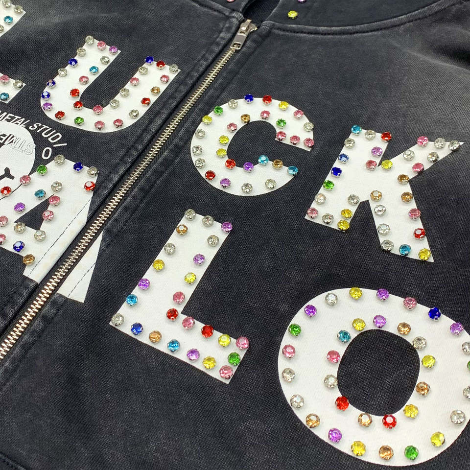 Heavyweight 100% Cotton Fleece Embroidered Zip-Up Hooded Washed Rhinestone Print Custom Vintage Streetwear Unisex Winter