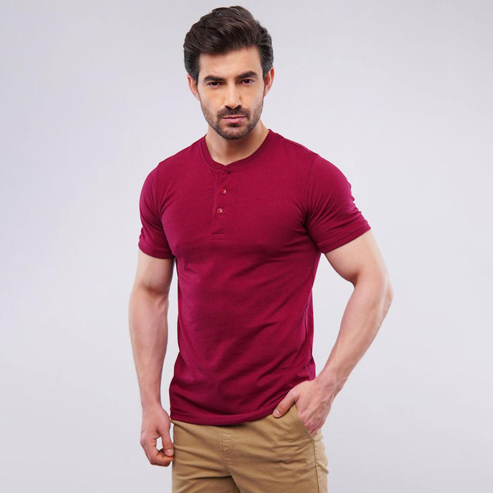 เสื้อยืดเฮนลีย์แขนสั้นคอกลมทรงเข้ารูป ผ้าเจอร์ซีย์คอตตอน 100% เนื้อหนา ไม่เป็นขุย ระบายอากาศได้ดี ไร้ตะเข็บ